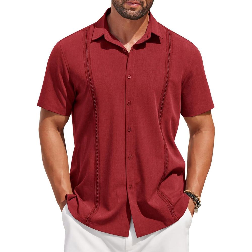 Save big on COOFANDY Mens Short Sleeve Cuban Guayabera Shirt Casual Summer Beach Button Down Shirts(Red) during our summer blowout sale. Limited quantities available.