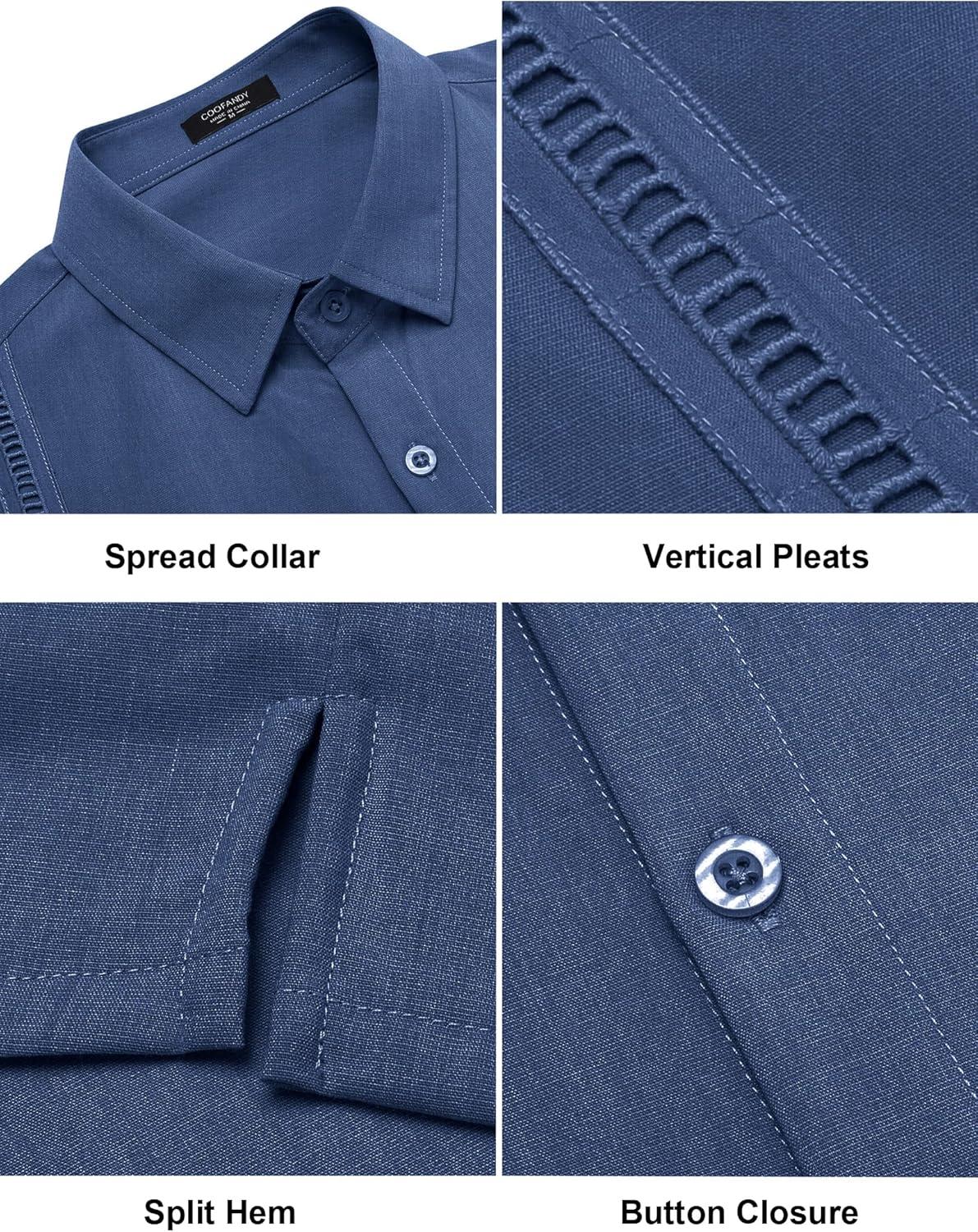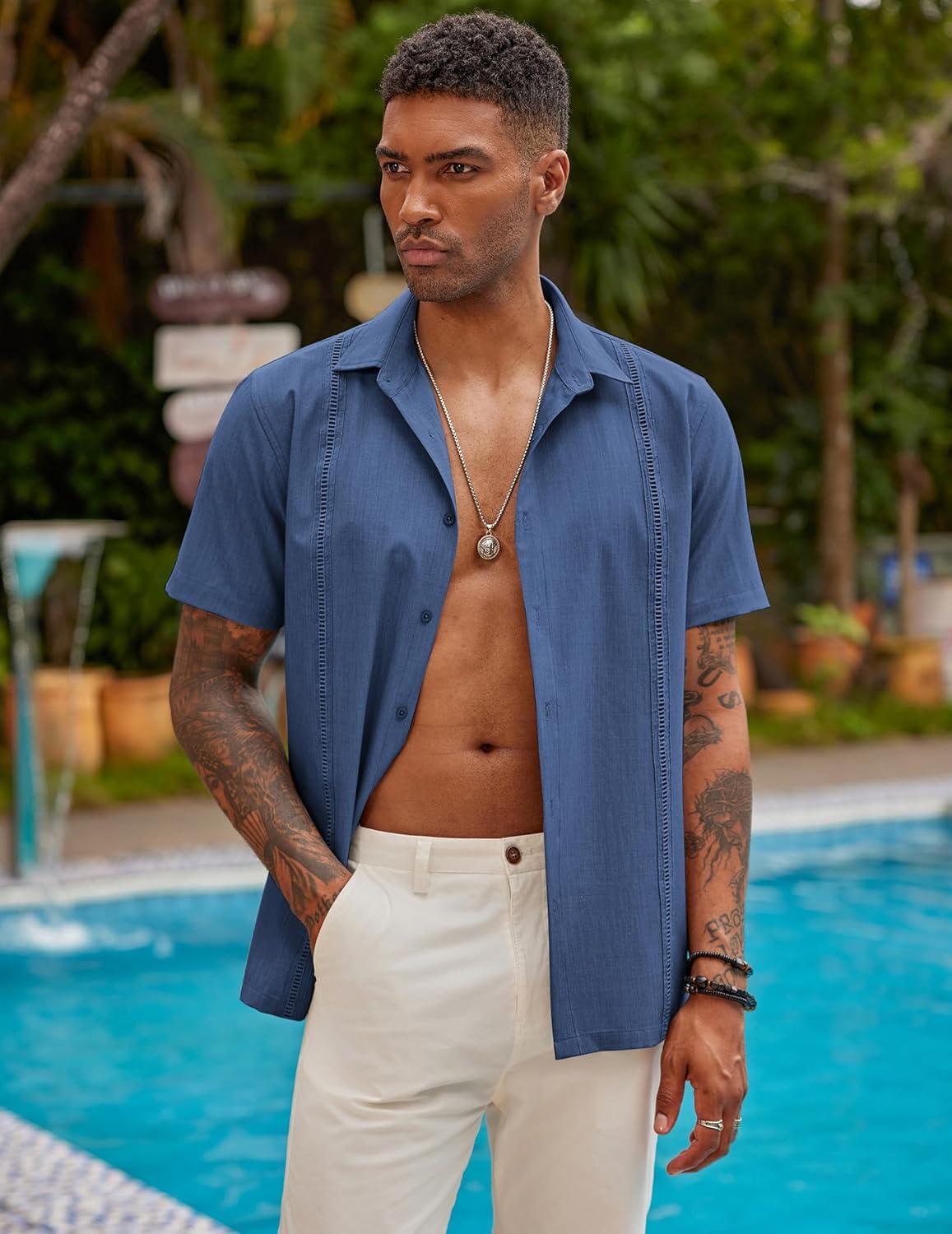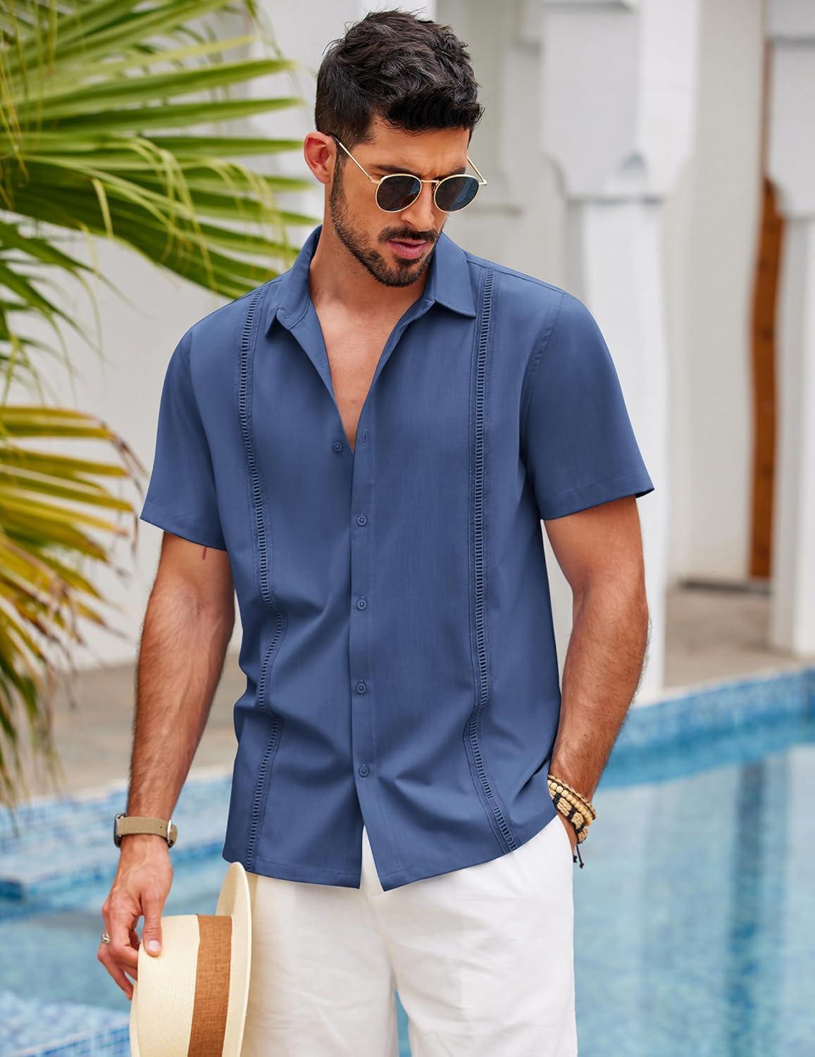 COOFANDY Mens Short Sleeve Cuban Guayabera Shirt Casual Summer Beach Button Down Shirts(Royal Blue)