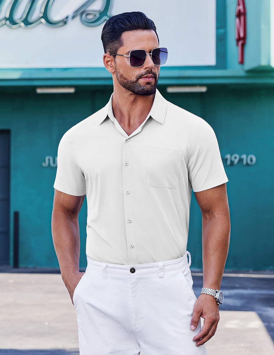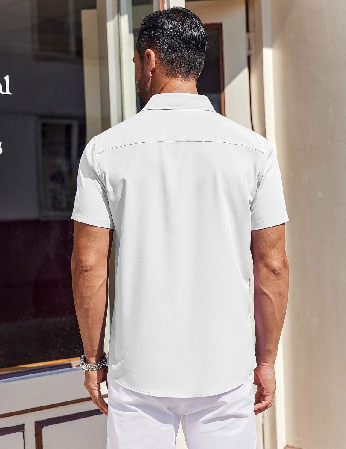 COOFANDY Mens Short Sleeve Dress Shirts Button Down Shirts Regular Fit Business Casual Shirt with Pocket(White)