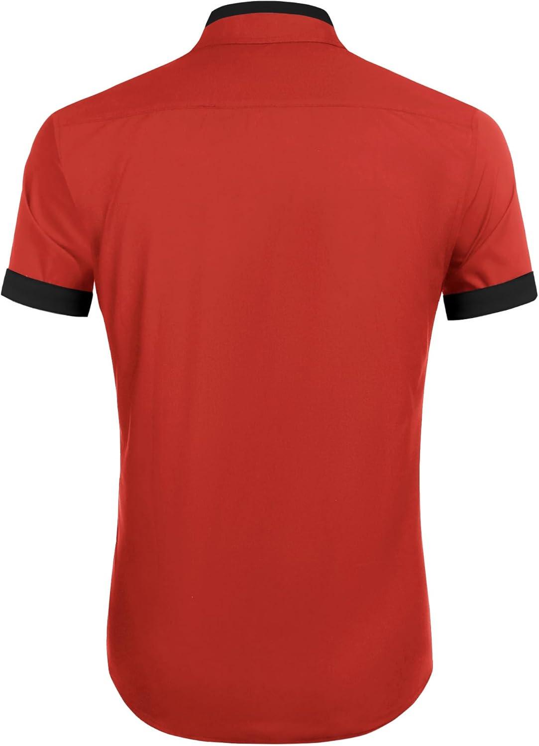 COOFANDY Mens Short Sleeve Dress Shirts Casual Wrinkle Free Shirt Plaid Collar Summer Button Down Shirts(Red(black))
