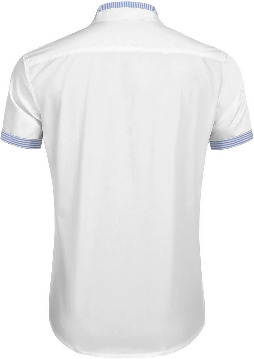 COOFANDY Mens Short Sleeve Dress Shirts Casual Wrinkle Free Shirt Plaid Collar Summer Button Down Shirts(White(blue Stripe))
