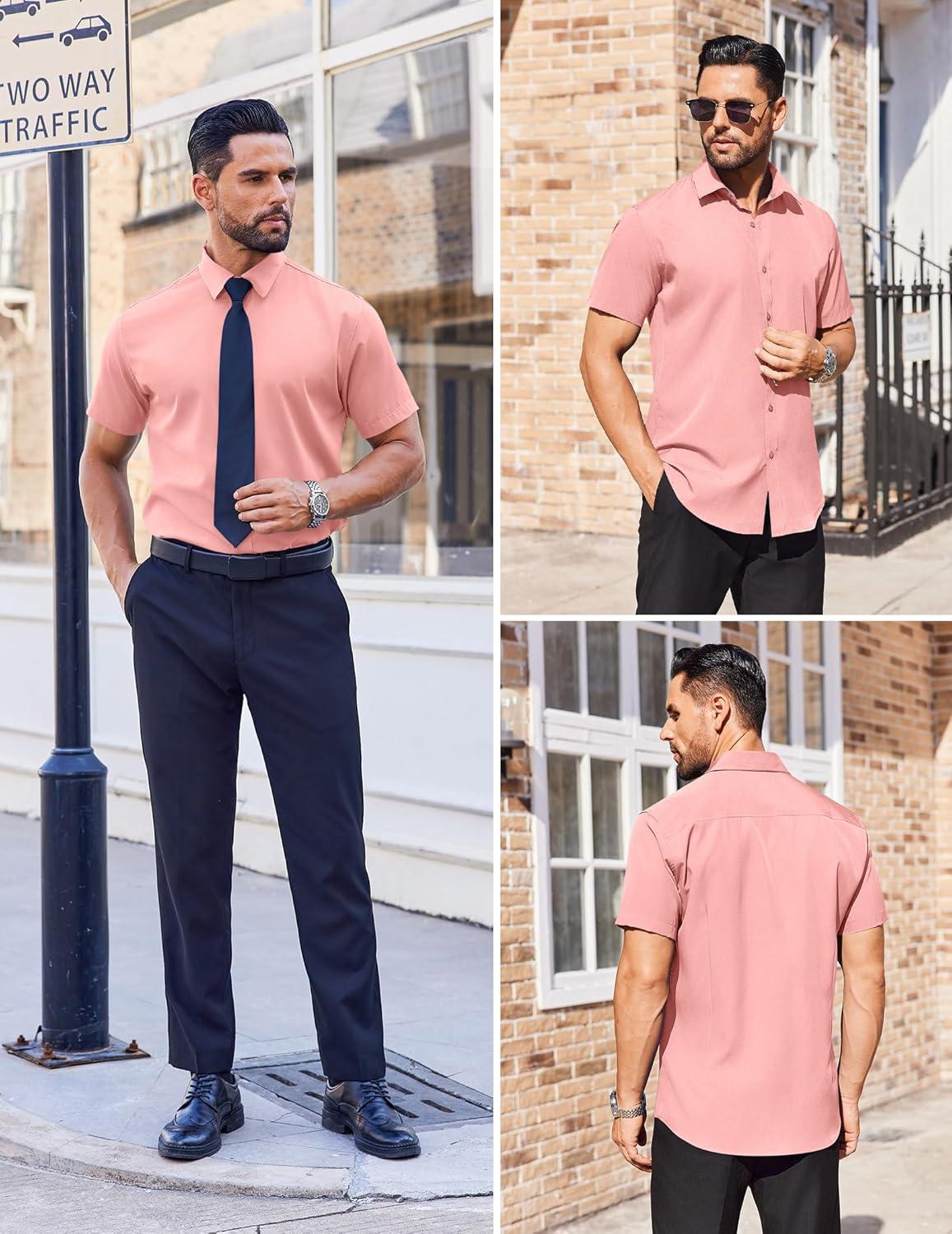 imageCOOFANDY Mens Short Sleeve Dress Shirts Stain Shield Button Down Shirt for Summer Business Wedding PartyPink
