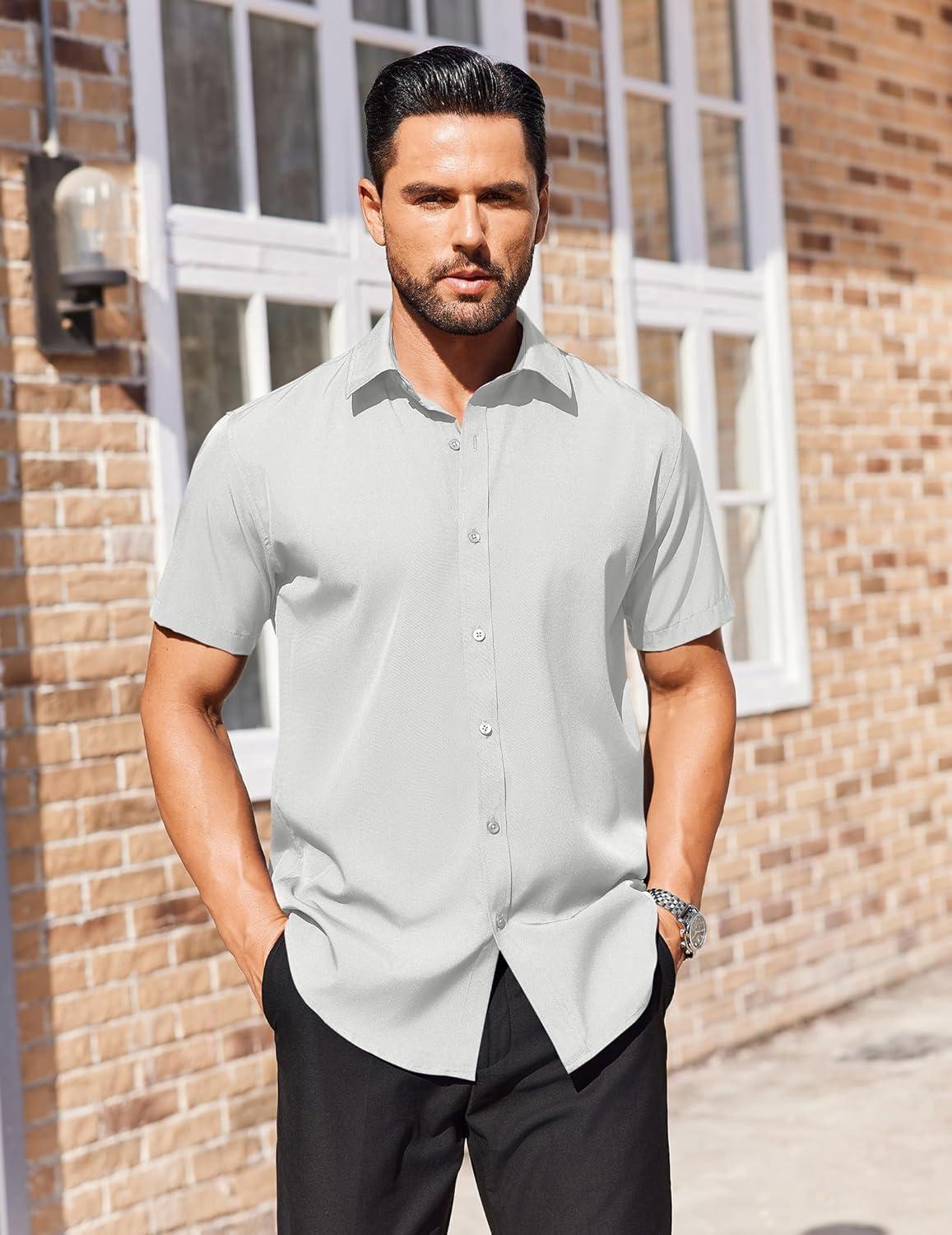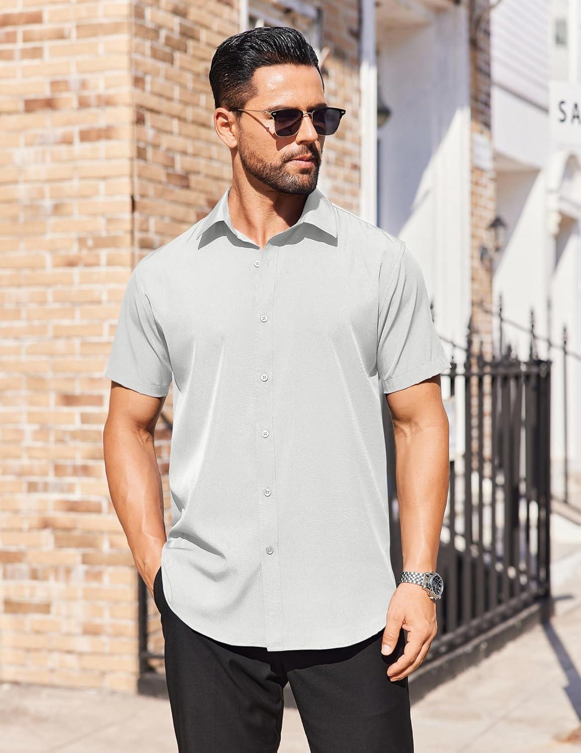 COOFANDY Men’s Short Sleeve Dress Shirts Stain Shield Button Down Shirt for Summer Business Wedding Party(White)