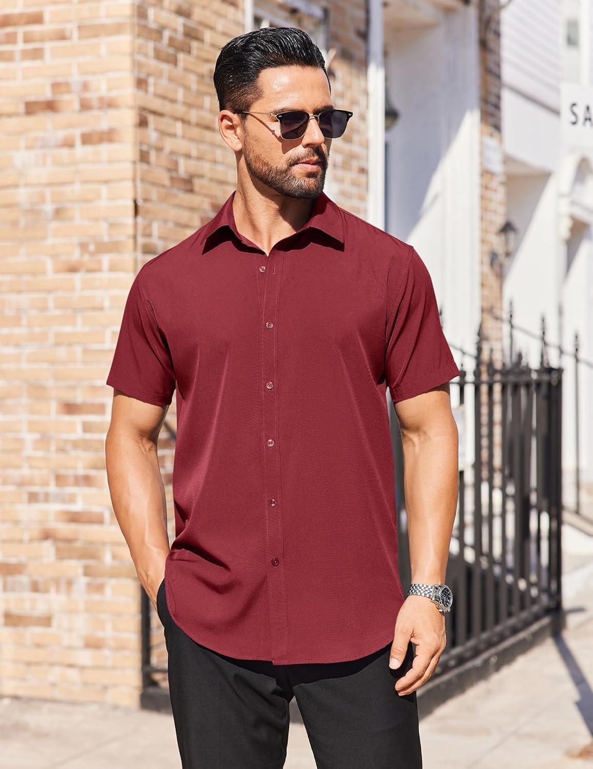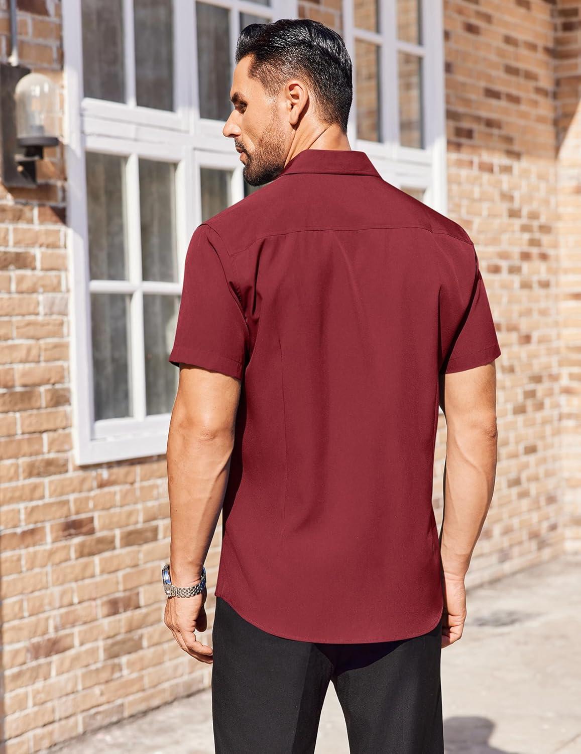 COOFANDY Men’s Short Sleeve Dress Shirts Stain Shield Button Down Shirt for Summer Business Wedding Party(Wine Red)