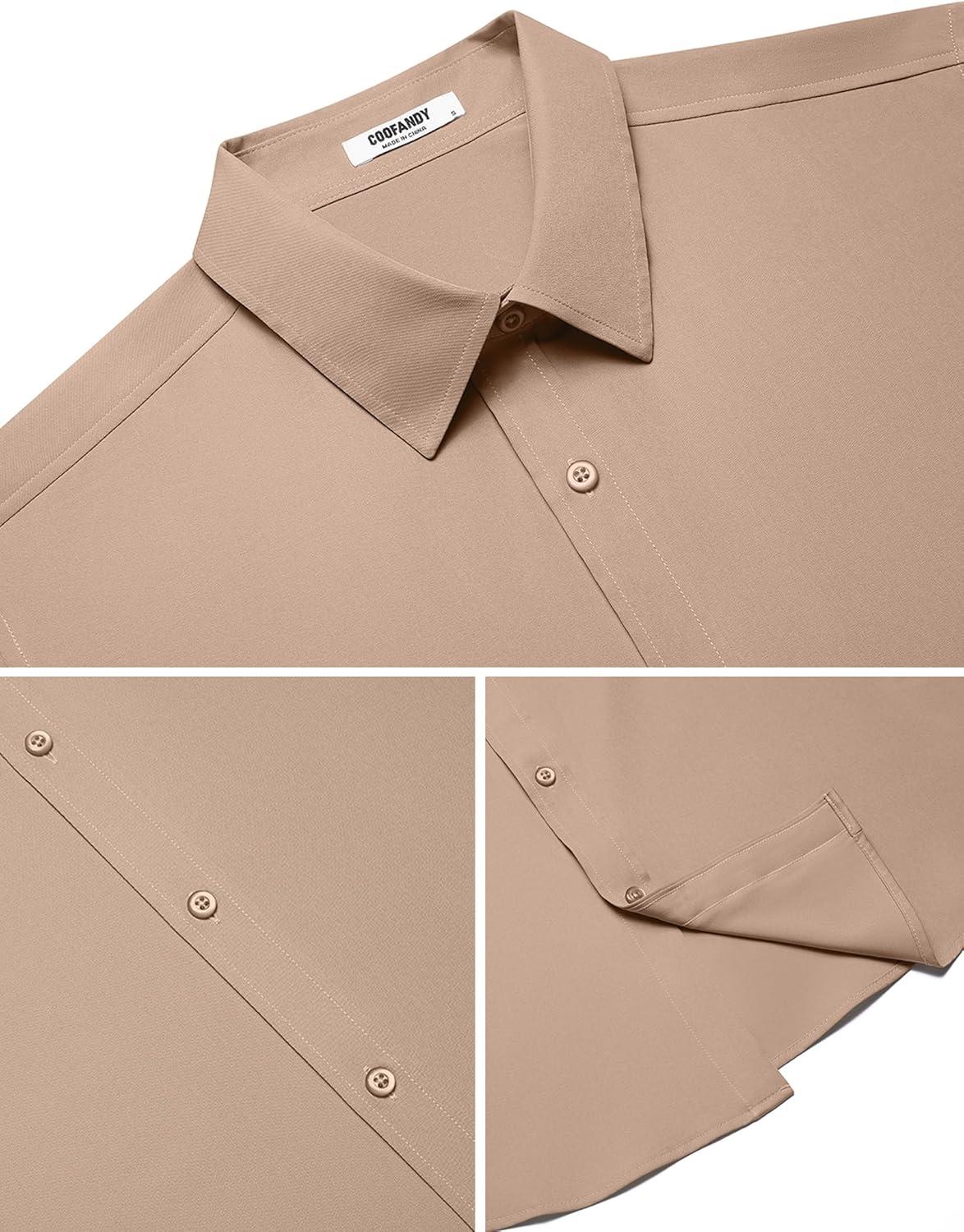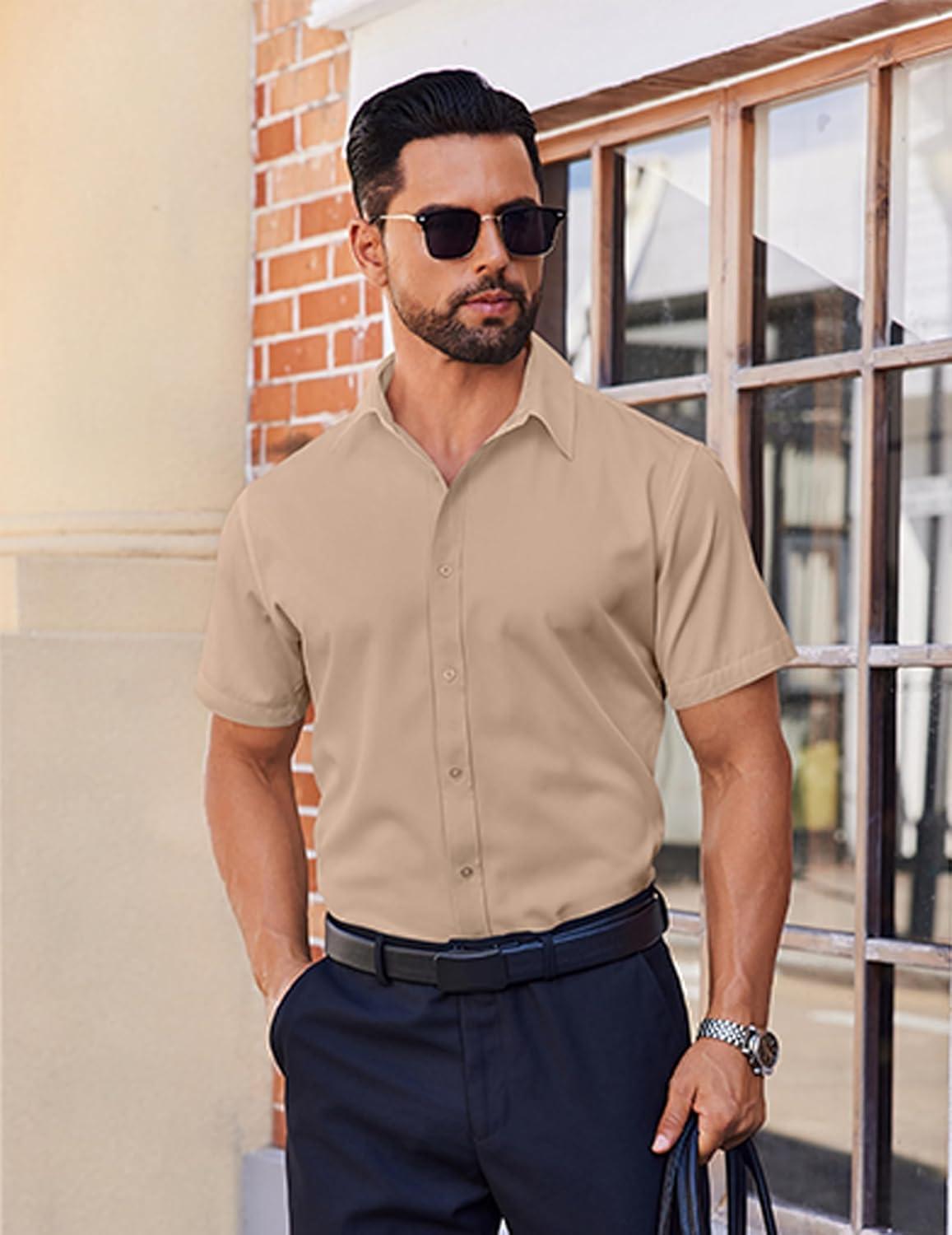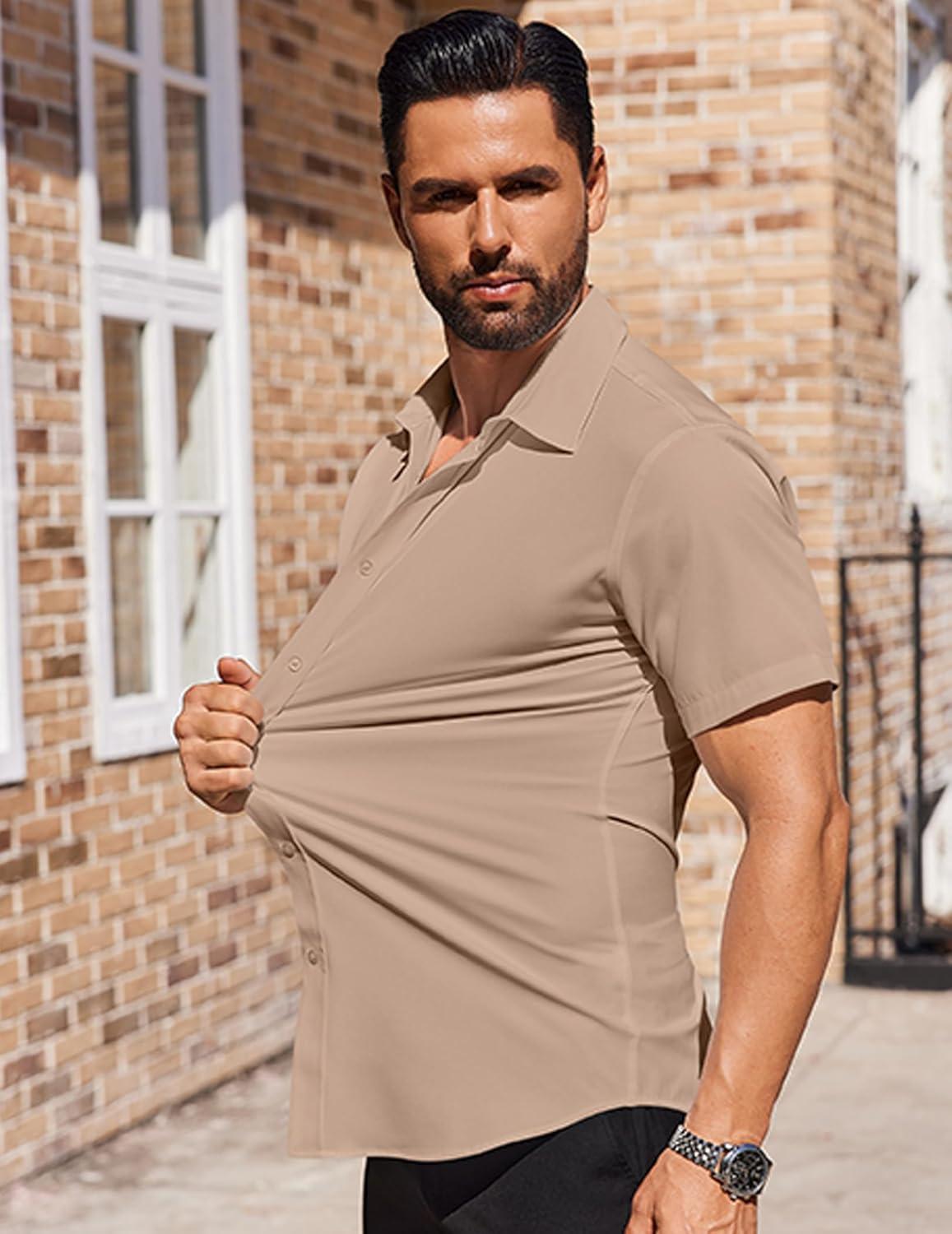 COOFANDY Mens Short Sleeve Dress Shirts Stretch Wrinkle Free Button Down Shirt Casual Summer Top(Khaki)