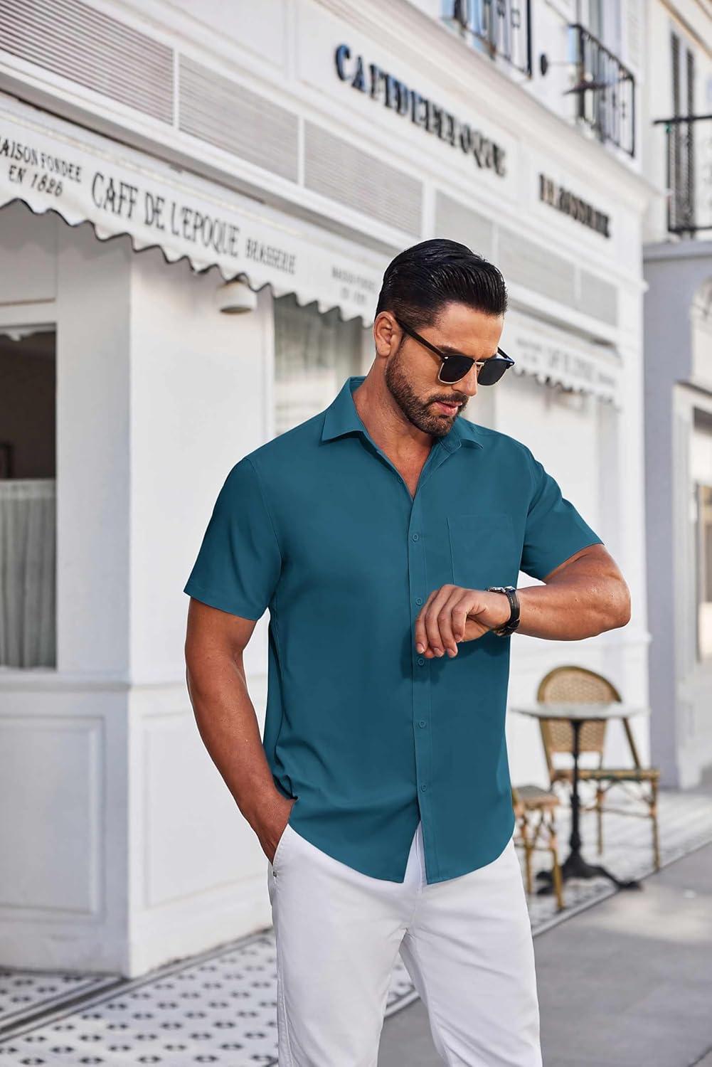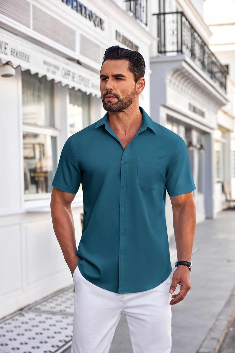 COOFANDY Mens Short Sleeve Dress Shirts Wrinkle Free Business Casual Button Down Shirt with Pocket(Blue)