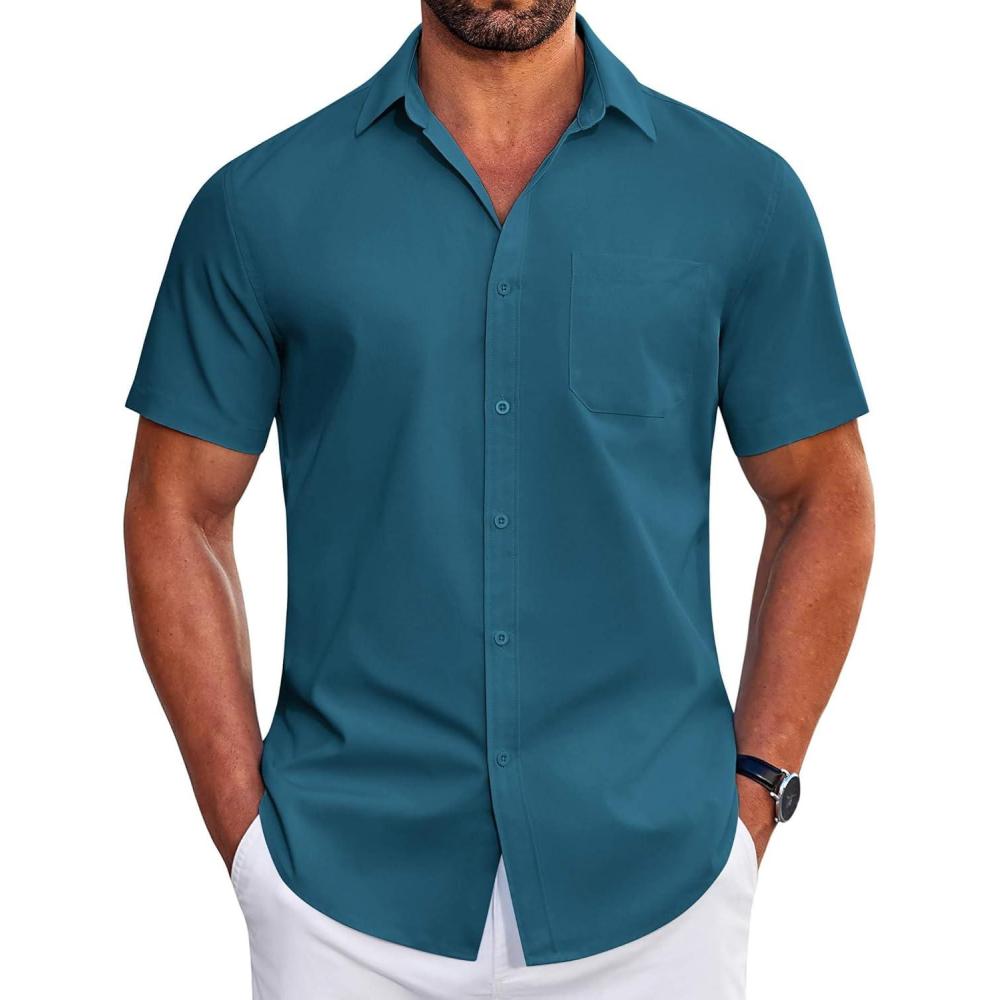 Be the first to review “COOFANDY Mens Short Sleeve Dress Shirts Wrinkle Free Business Casual Button Down Shirt with Pocket(Blue)”