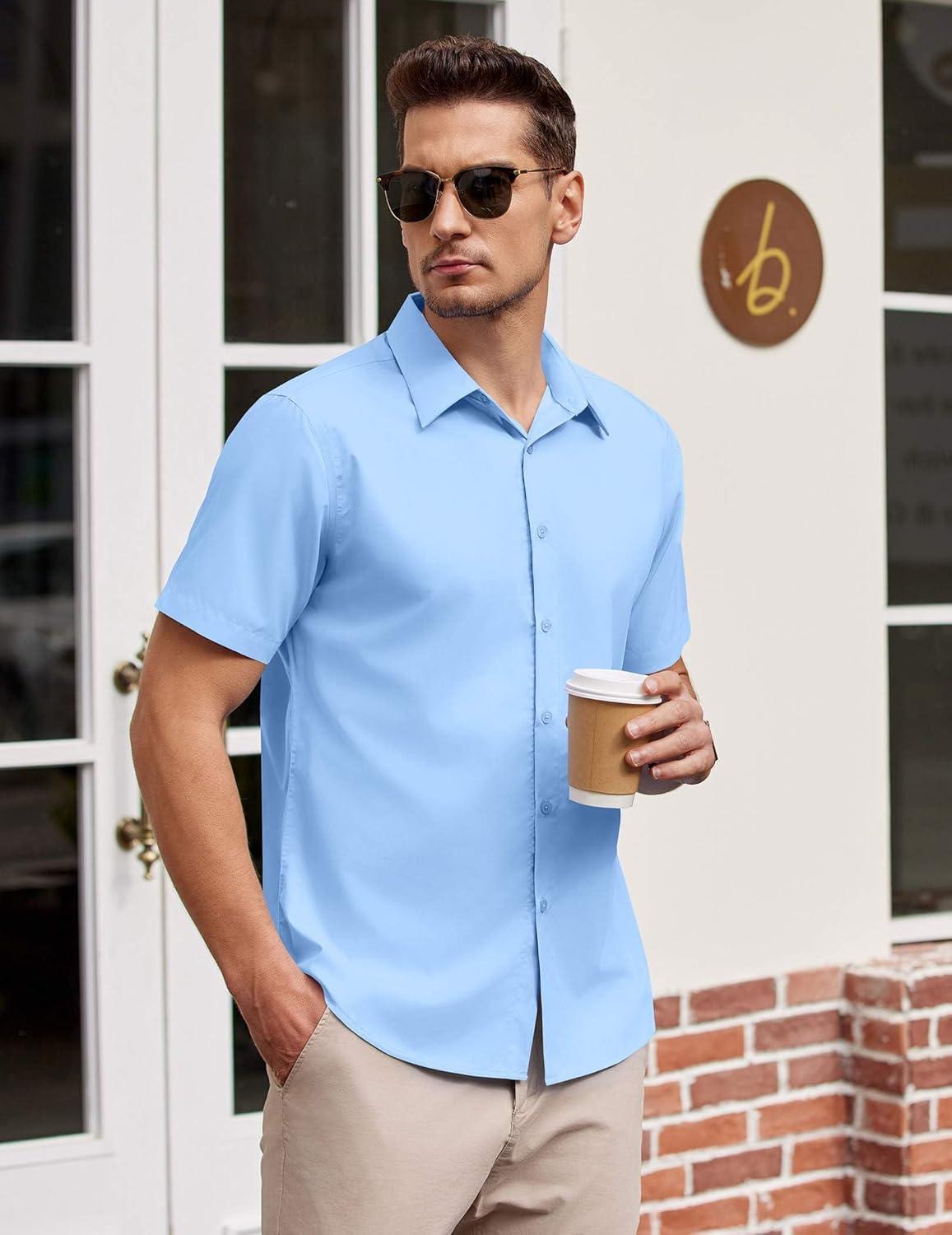 COOFANDY Mens Short Sleeve Dress Shirts Wrinkle Free Casual Button Down Shirts Summer Untucked Dress Shirt(Light Blue)