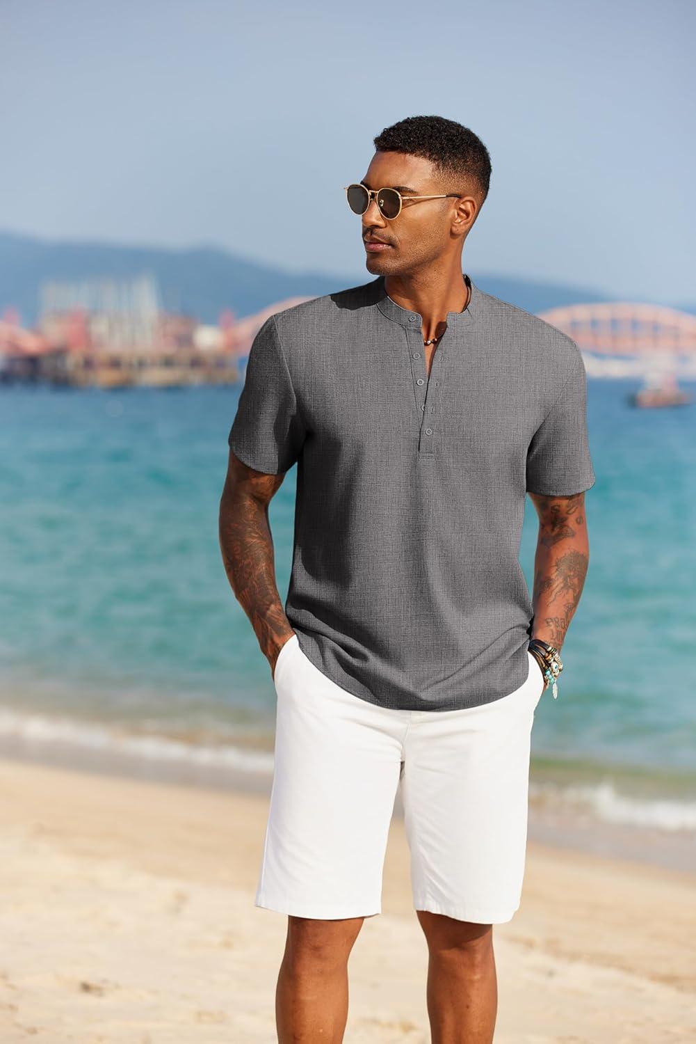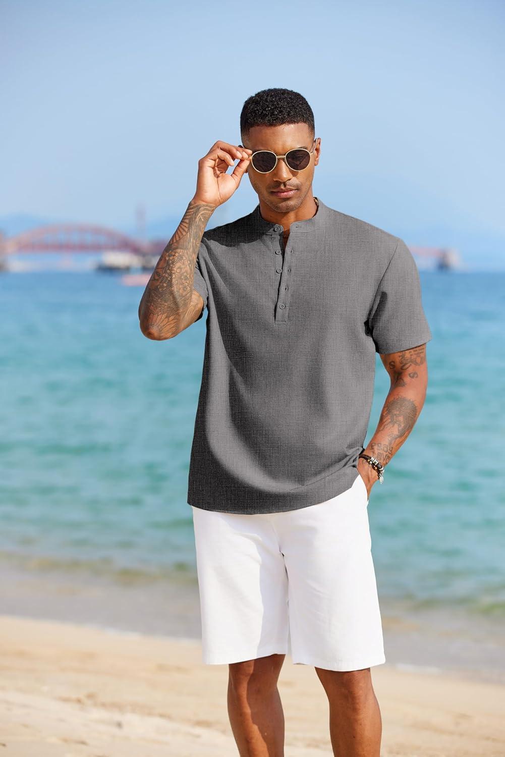 Don’t miss out on our limited-time offer: buy COOFANDY Men’s Short Sleeve Henley Shirts Casual Collarless Shirt Band Collar Henley Summer Beach Henley T-Shirt(Dark Grey), get {accessory} free!