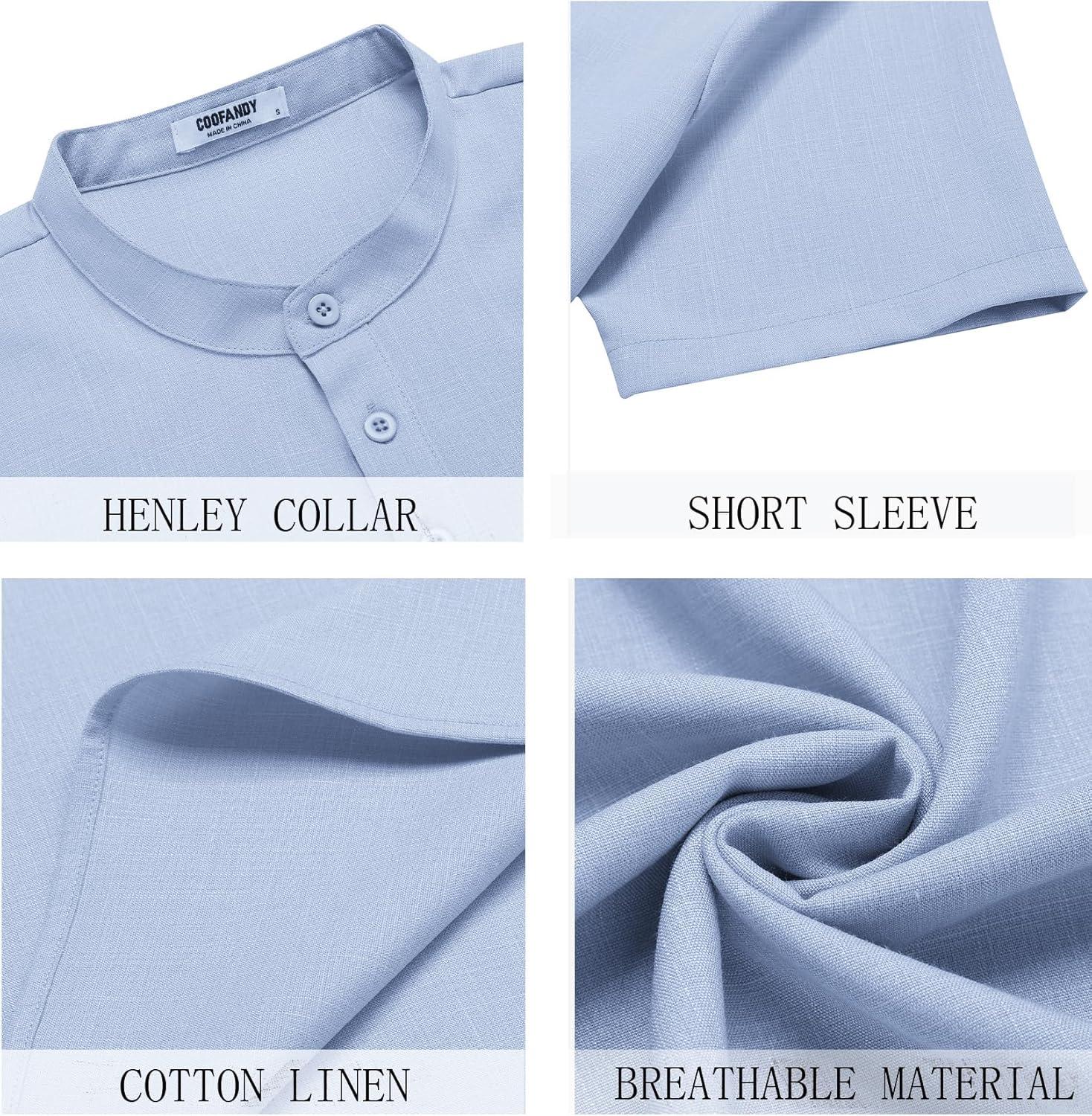 COOFANDY Men's Short Sleeve Henley Shirts Casual Collarless Shirt Band Collar Henley Summer Beach Henley T-Shirt(Light Blue)