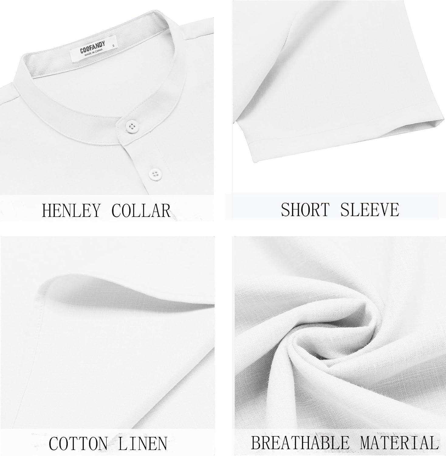 COOFANDY Men’s Short Sleeve Henley Shirts Casual Collarless Shirt Band Collar Henley Summer Beach Henley T-Shirt(White)