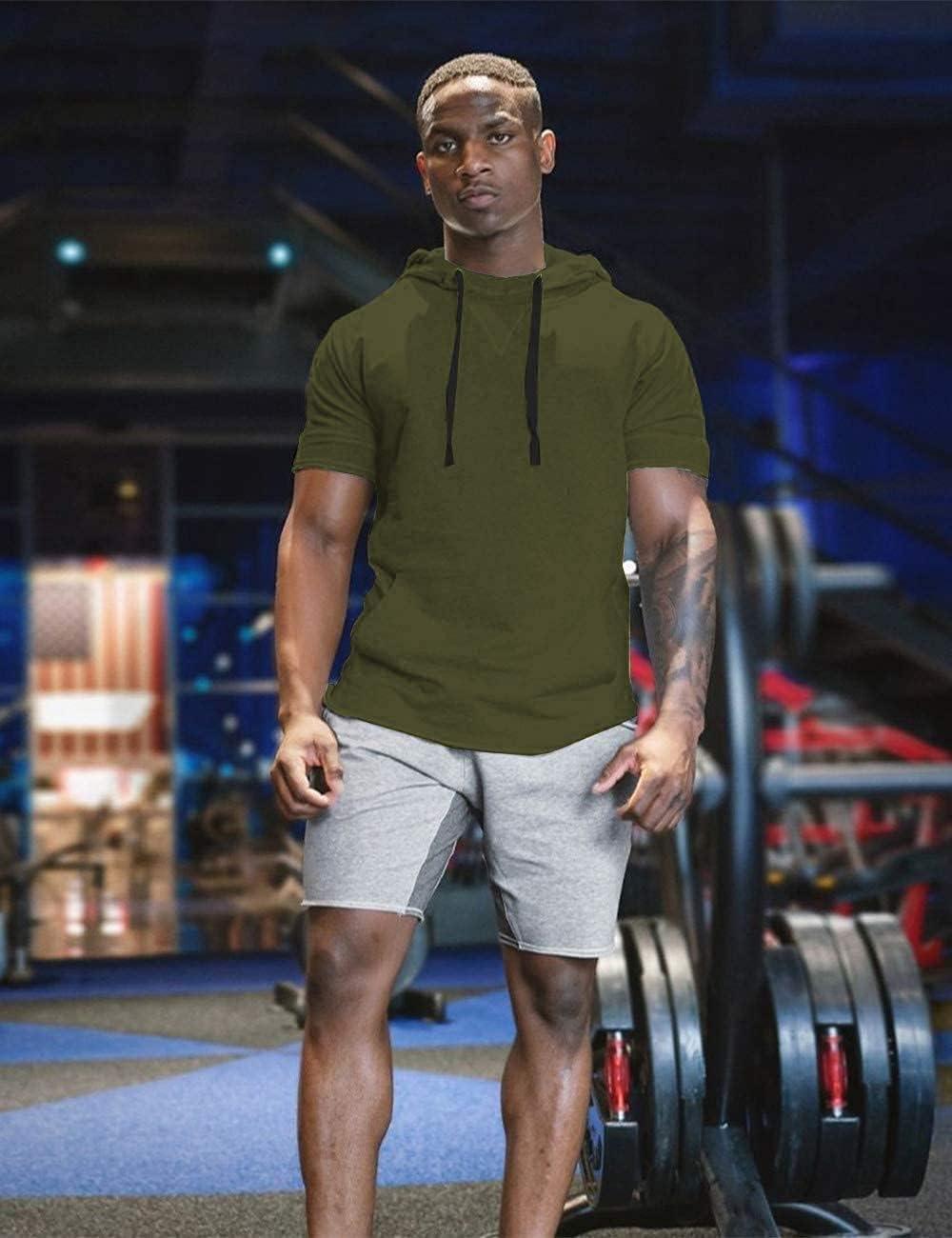 COOFANDY Men's Short Sleeve Hoodie Workout Gym Sweatshirt Muscle Fit Fashion Athletic Hoodies Pullover Cotton Hooded T-Shirts(Army Green)
