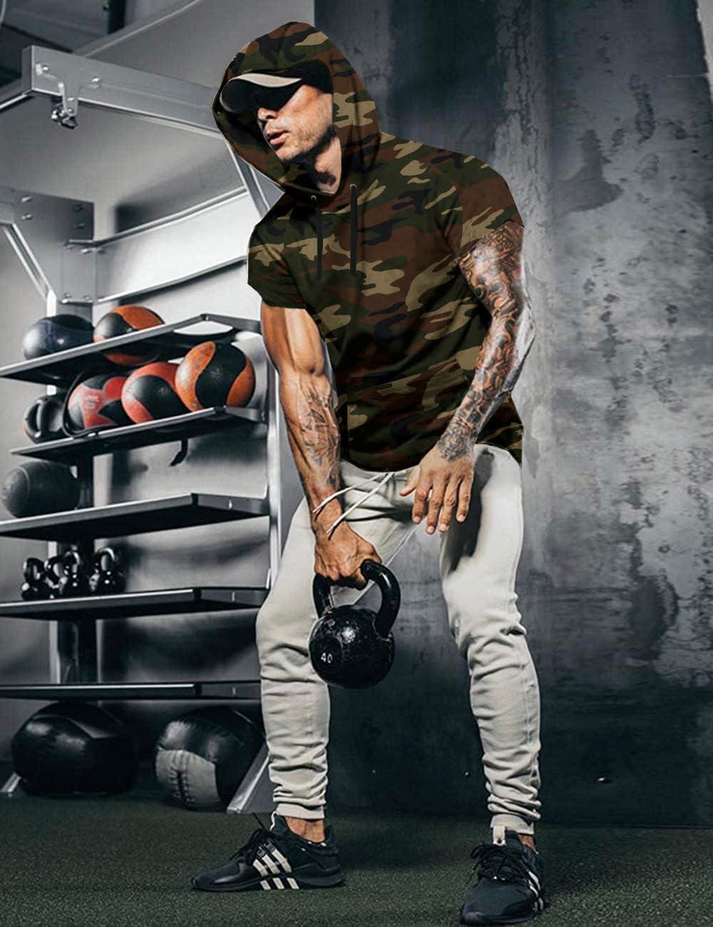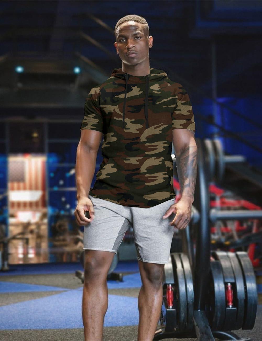 COOFANDY Men's Short Sleeve Hoodie Workout Gym Sweatshirt Muscle Fit Fashion Athletic Hoodies Pullover Cotton Hooded T-Shirts(Camo)