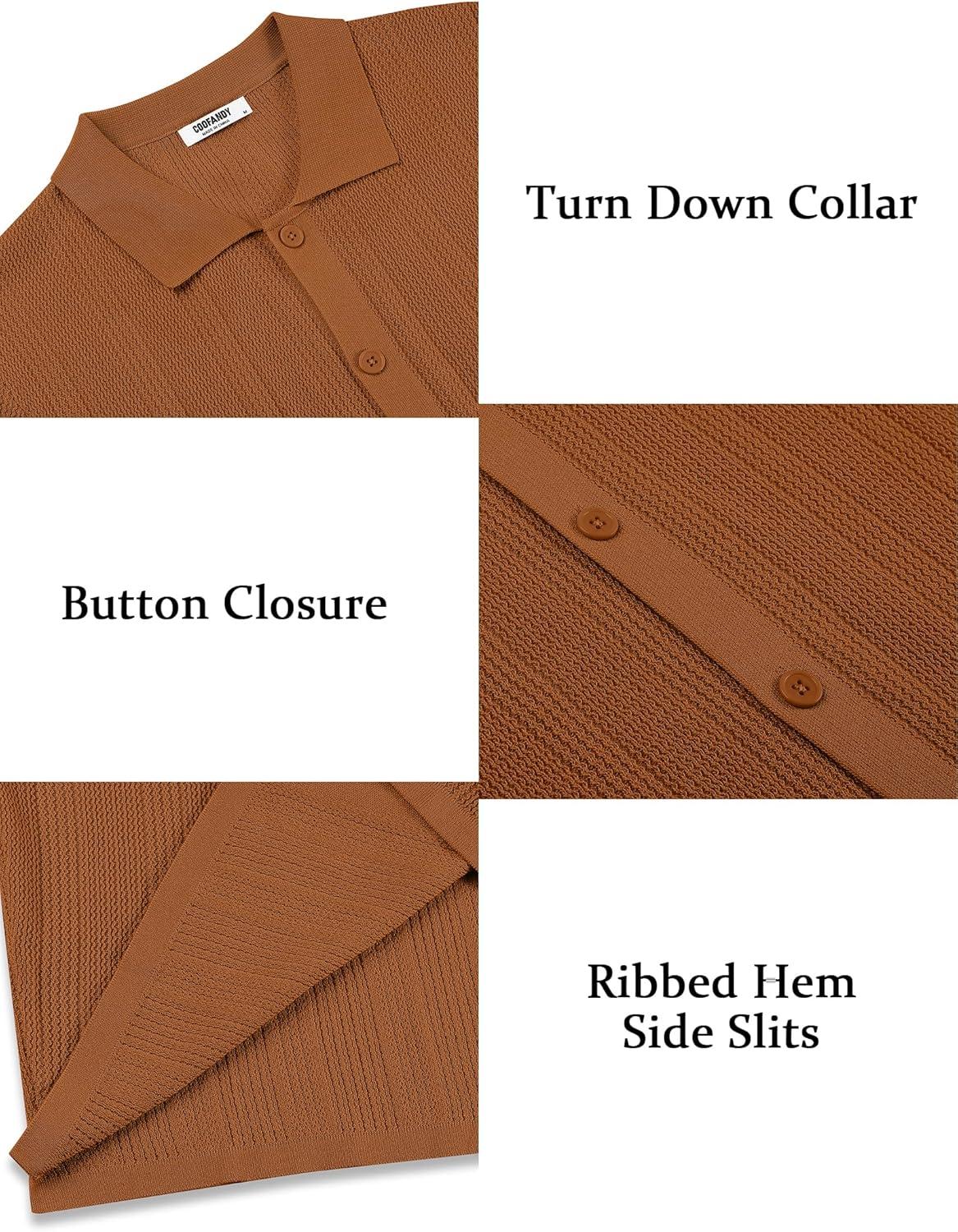 imageCOOFANDY Mens Short Sleeve Knit Shirts Casual Button Down Polo Shirt Fashion Summer Beach TopsBrown