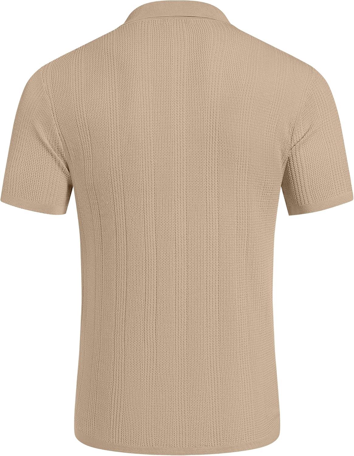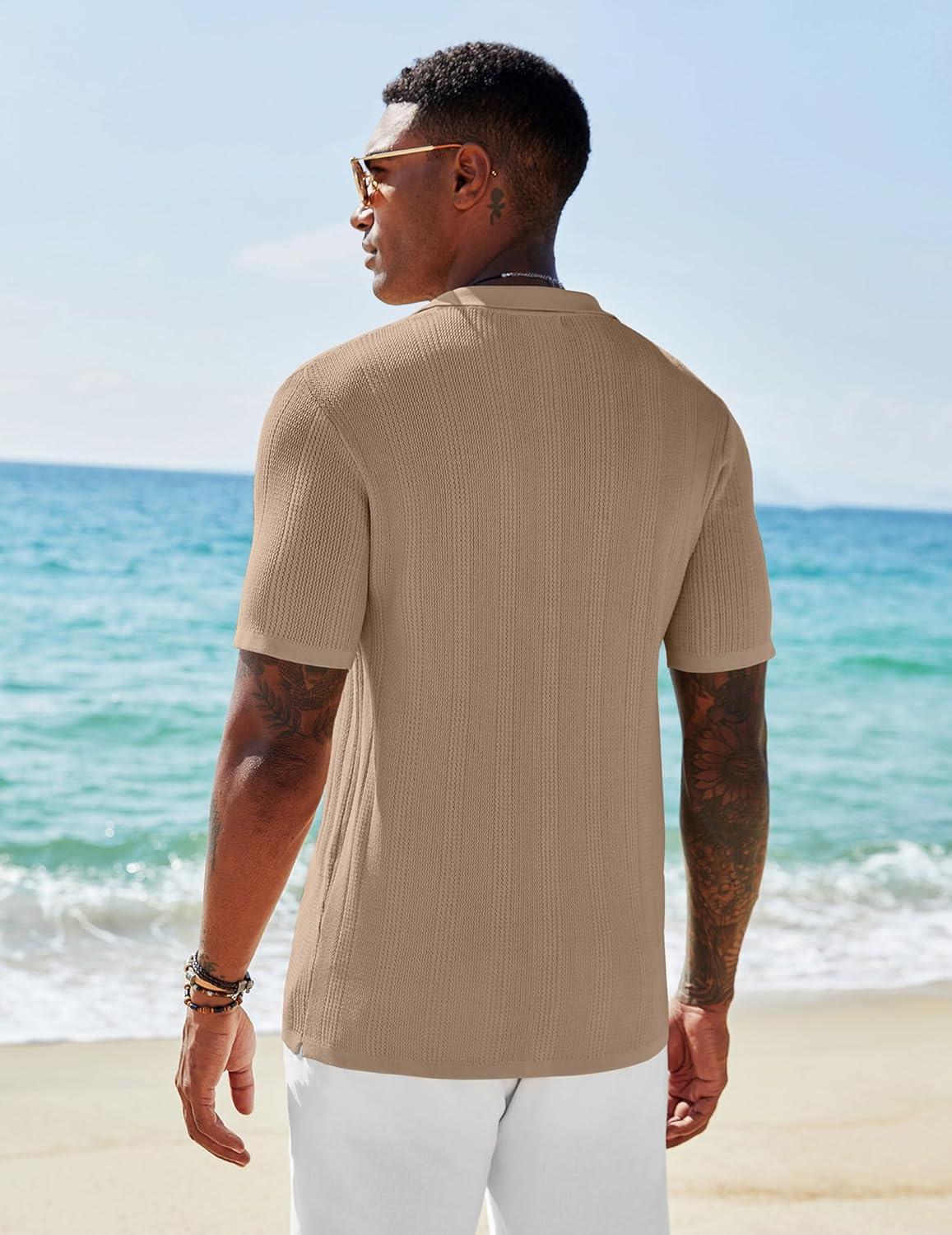 COOFANDY Men’s Short Sleeve Knit Shirts Casual Button Down Polo Shirt Fashion Summer Beach Tops(Khaki)