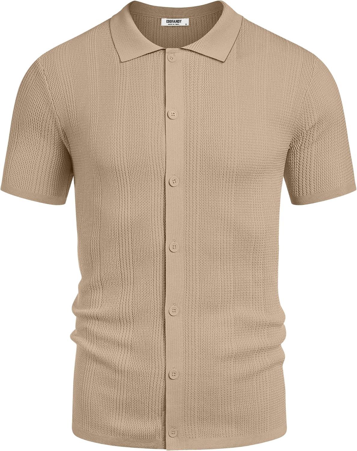 Save up to 40% on COOFANDY Men’s Short Sleeve Knit Shirts Casual Button Down Polo Shirt Fashion Summer Beach Tops(Khaki) styles during our end-of-season sale.
