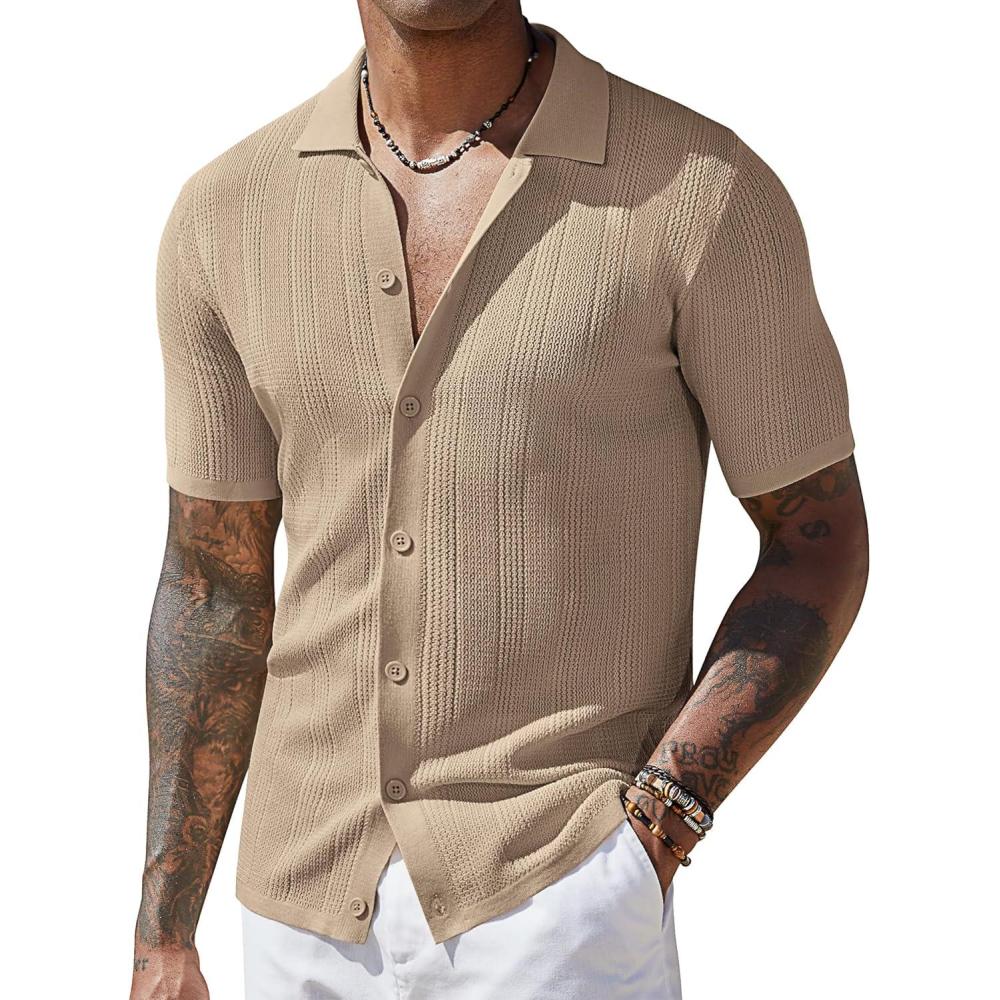 COOFANDY Men's Short Sleeve Knit Shirts Casual Button Down Polo Shirt Fashion Summer Beach Tops(Khaki)