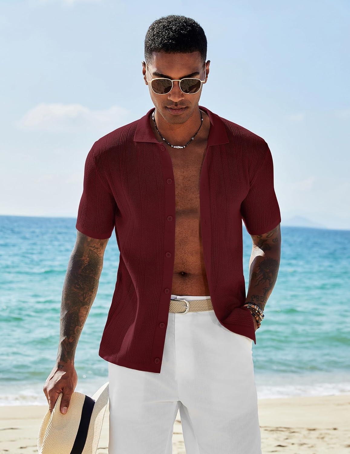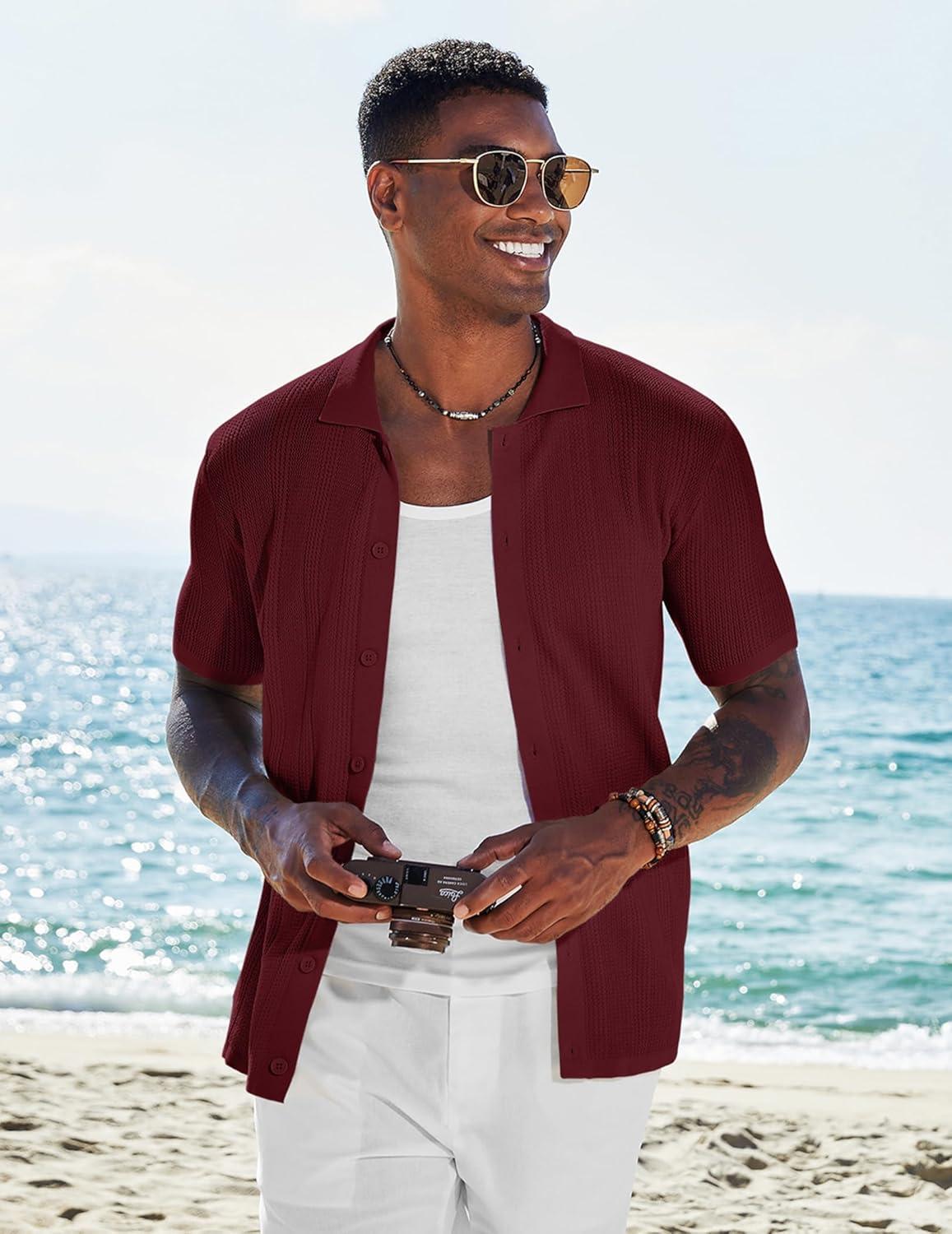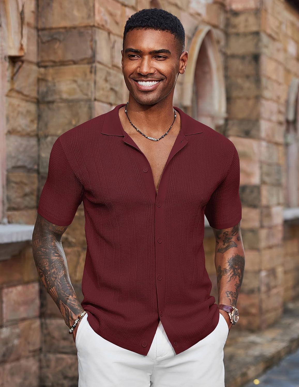 Don’t miss out on our limited-time offer: buy COOFANDY Men’s Short Sleeve Knit Shirts Casual Button Down Polo Shirt Fashion Summer Beach Tops(Wine Red), get {accessory} 50% off!