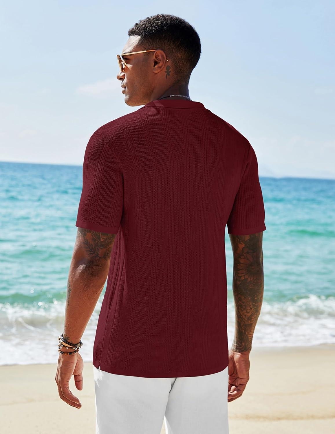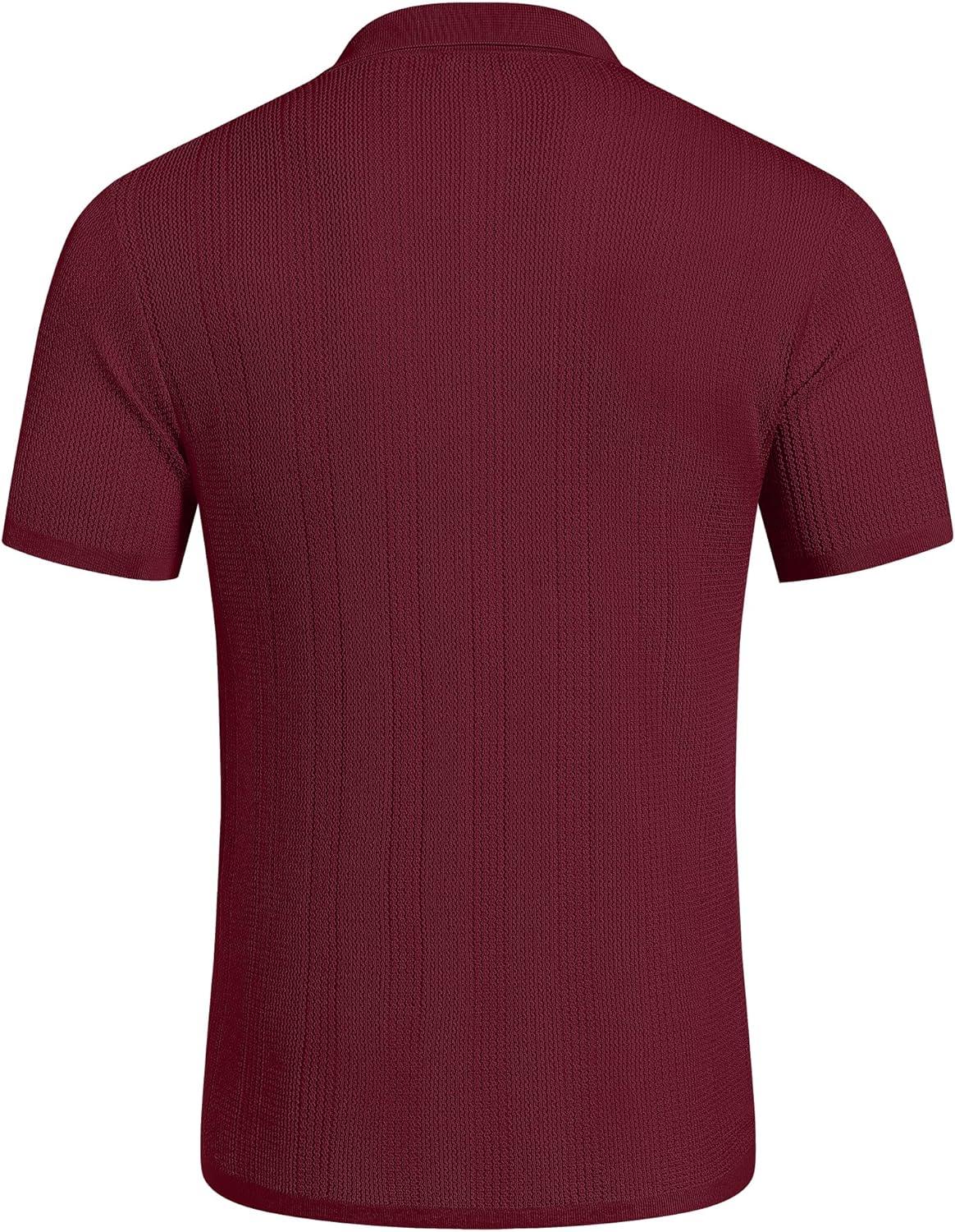 COOFANDY Men’s Short Sleeve Knit Shirts Casual Button Down Polo Shirt Fashion Summer Beach Tops(Wine Red)