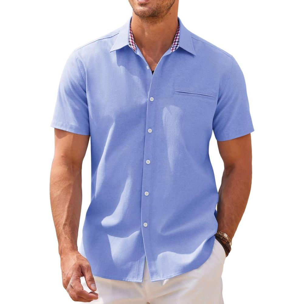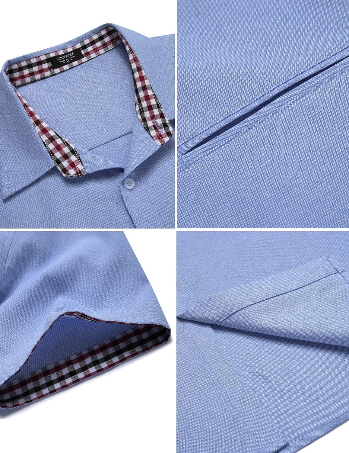 COOFANDY Men's Short Sleeve Oxford Dress Shirt Chambray Button Down Work Shirt Casual Plaid Collar Shirts(Sky Blue)