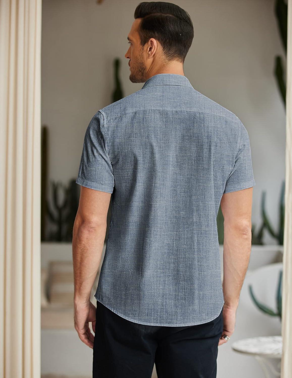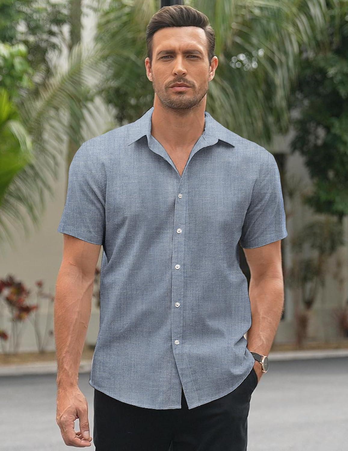 COOFANDY Mens Short Sleeve Shirt Casual Button Up Shirts for Men, Navy Blue, Large