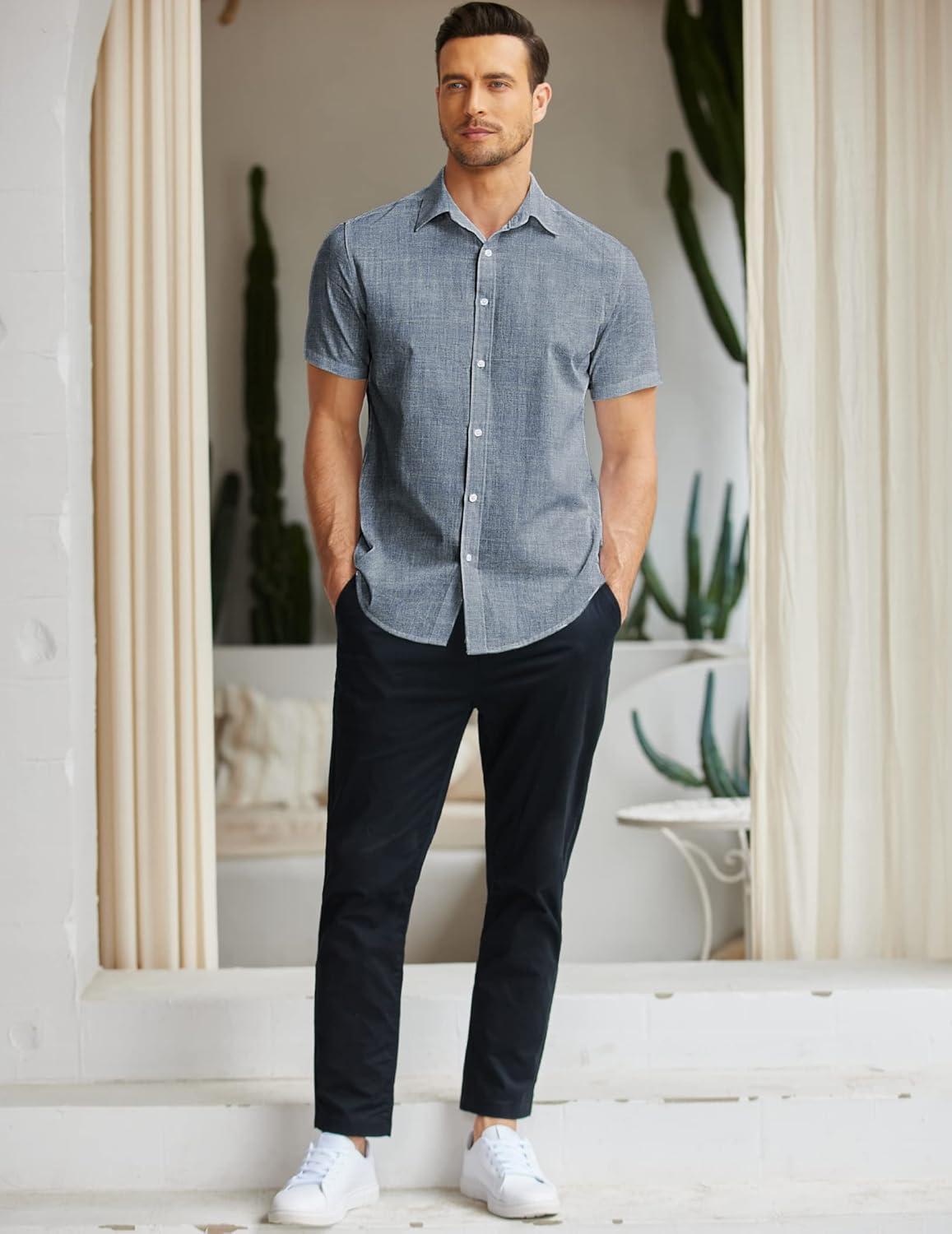 COOFANDY Men’s Short Sleeve Oxford Shirt Cotton Button Down Regular Fit Dress Shirts