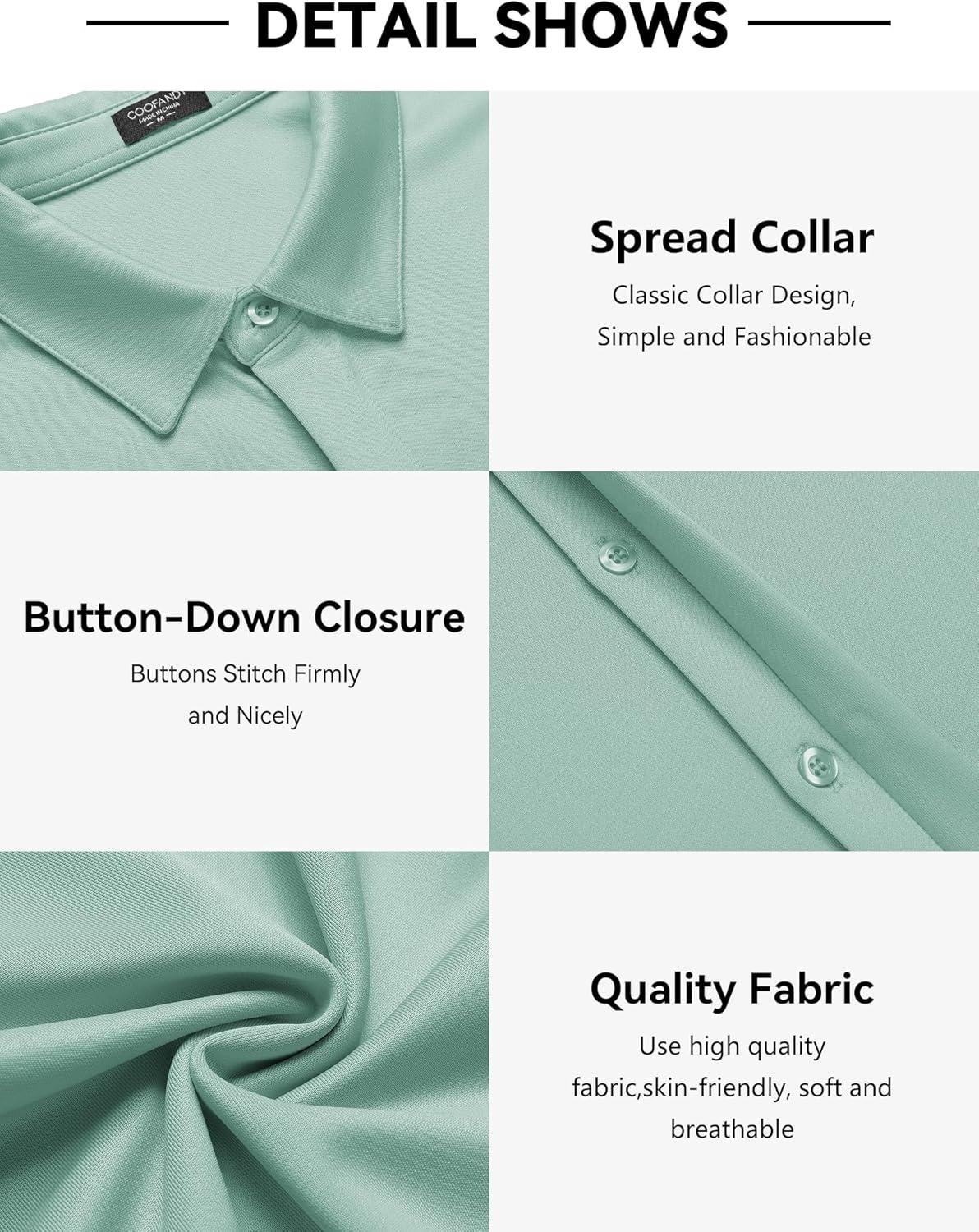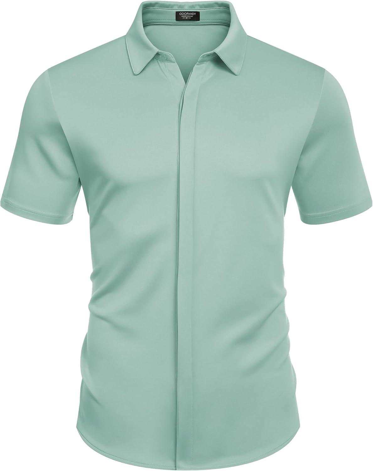COOFANDY Mens Short Sleeve Wrinkle Free Shirt Casual Button Down Shirt Summer Dress Shirt(Light Green)
