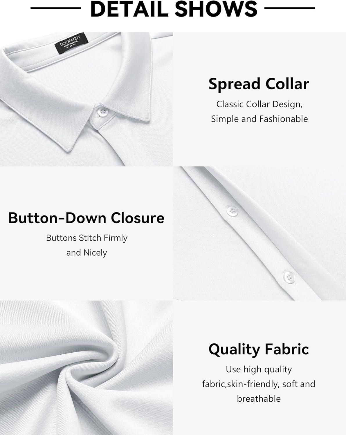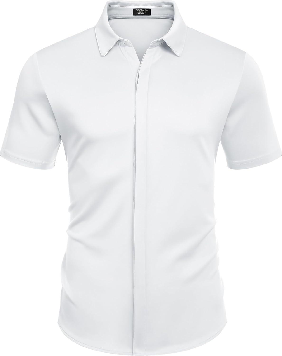 COOFANDY Mens Short Sleeve Wrinkle Free Shirt Casual Button Down Shirt Summer Dress Shirt(White)