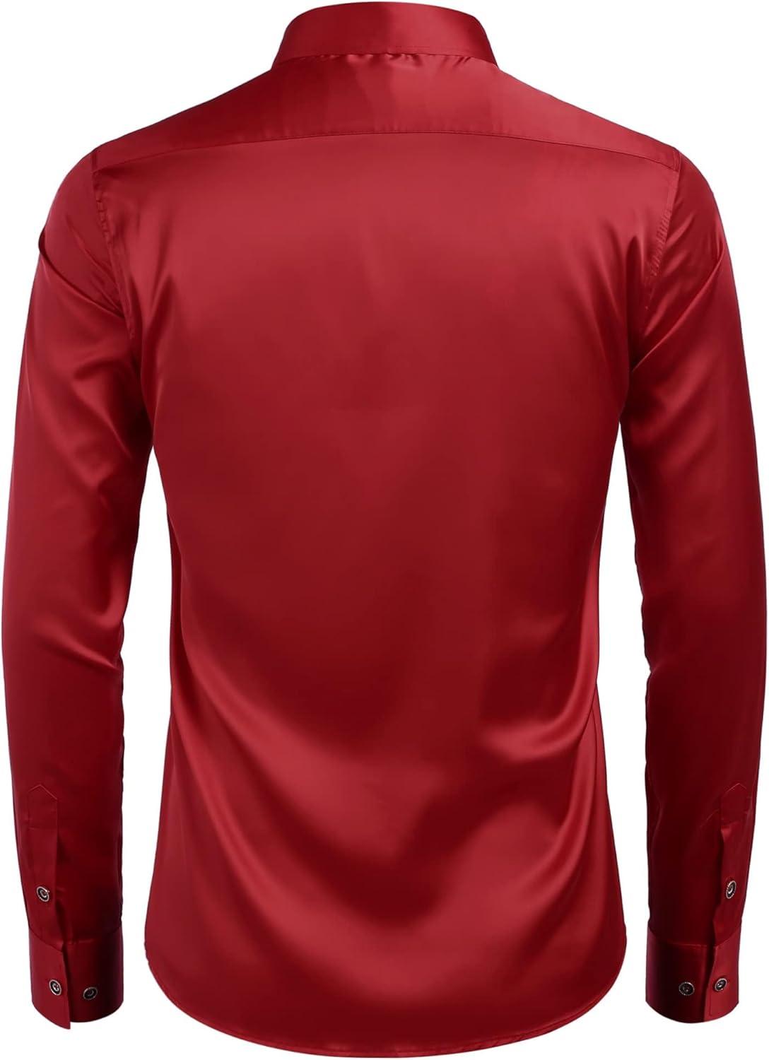 COOFANDY Men's Silk Satin Dress Shirts Jacquard Long Sleeve Floral Button Up Shirts Party Prom Wedding Shirt(P-wine Red)