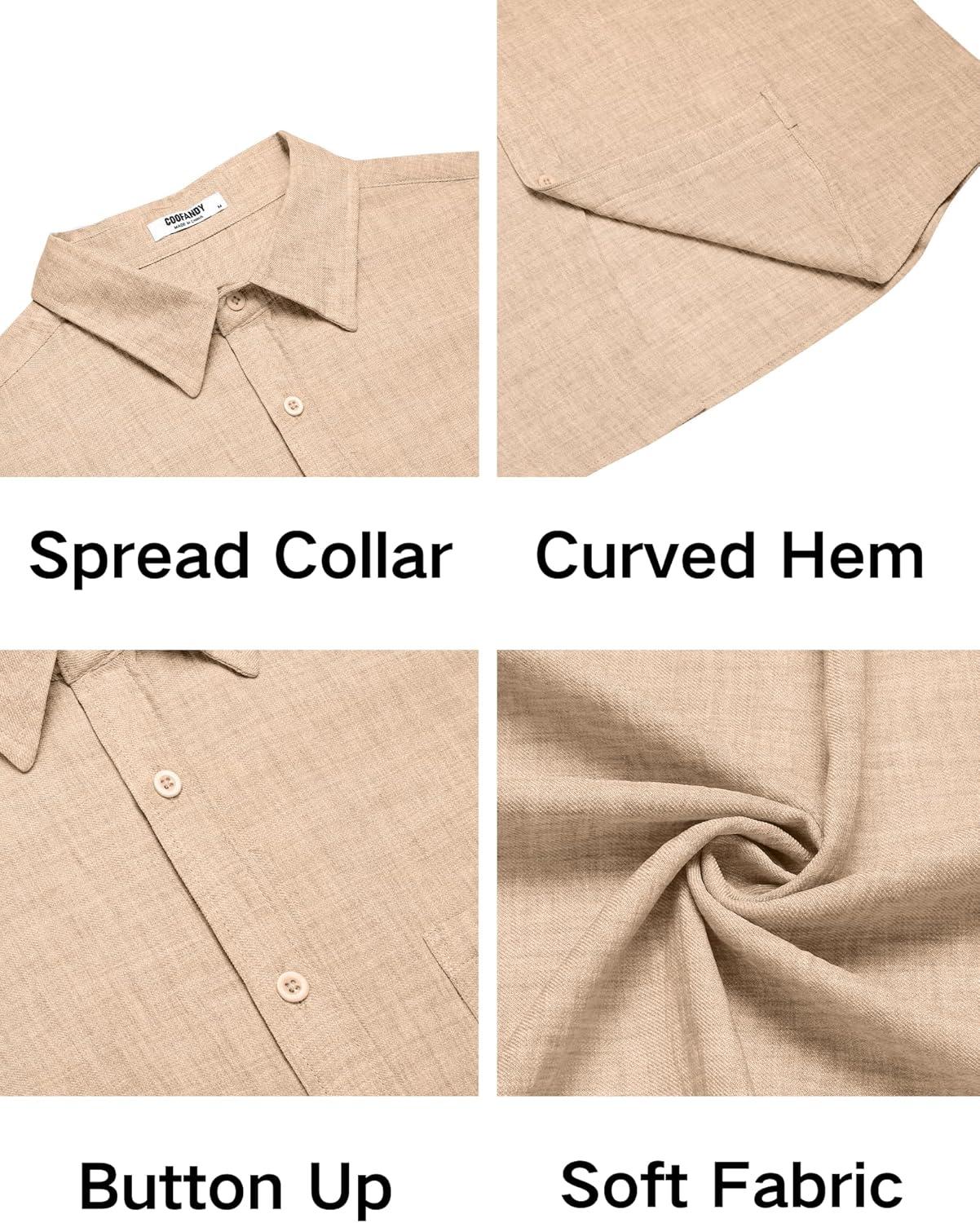 COOFANDY Men's Sleeveless Beach Shirts Summer Button Up Tank Tops Casual Textured Tank Shirt(Khaki)