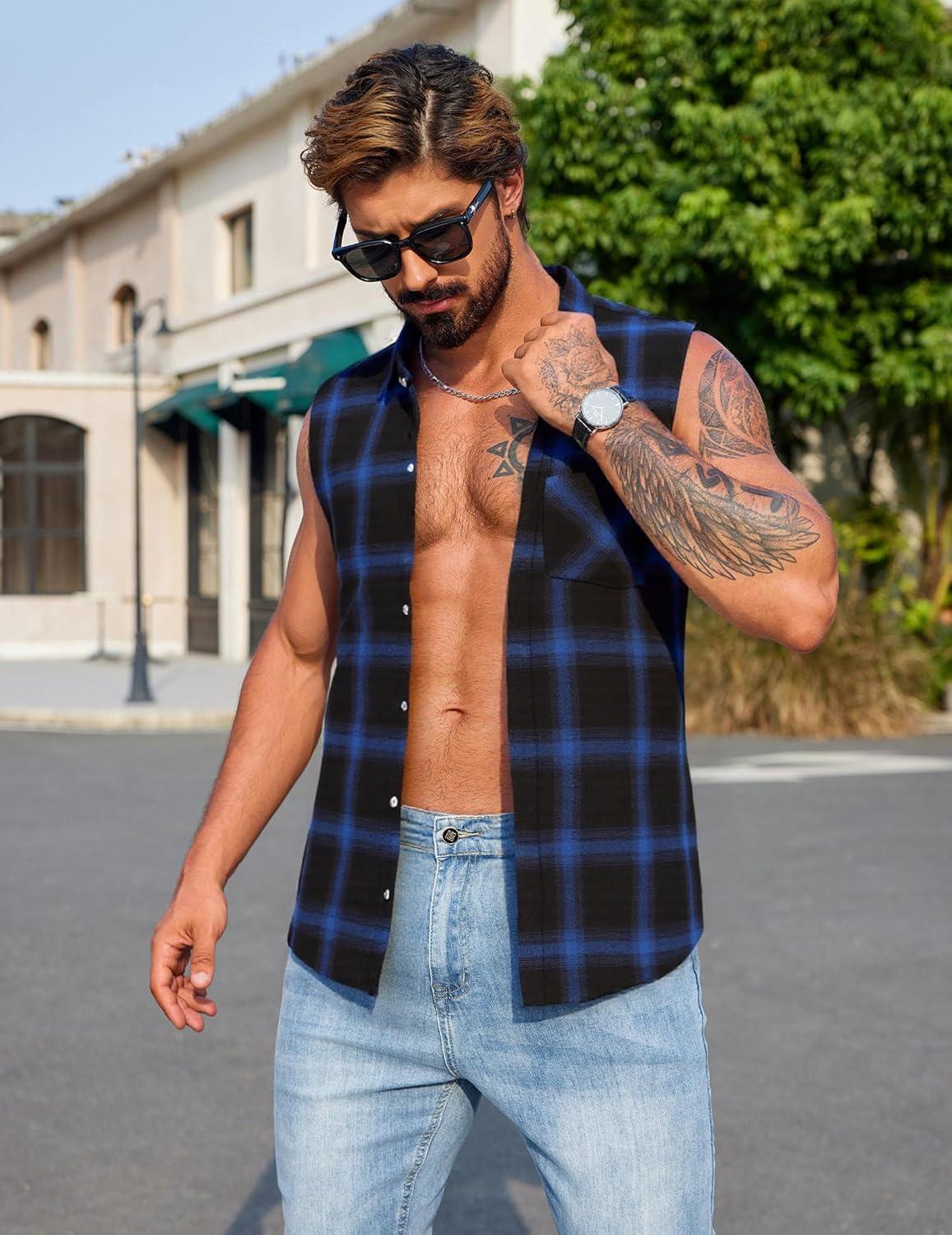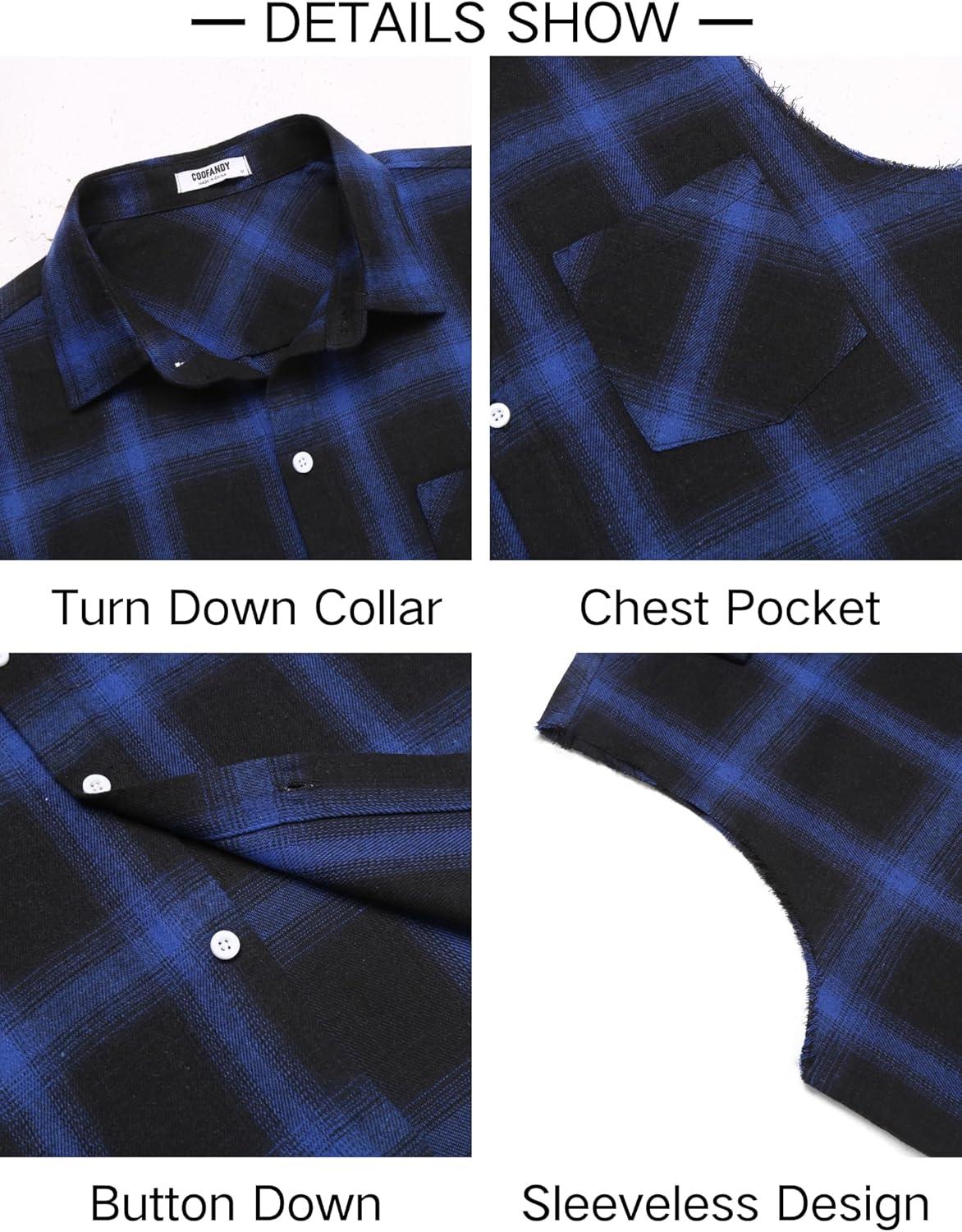 imageCOOFANDY Mens Sleeveless Flannel Shirt Casual Summer Tank Top Button Up Sleeveless Beach Shirts with Chest PocketBlue1