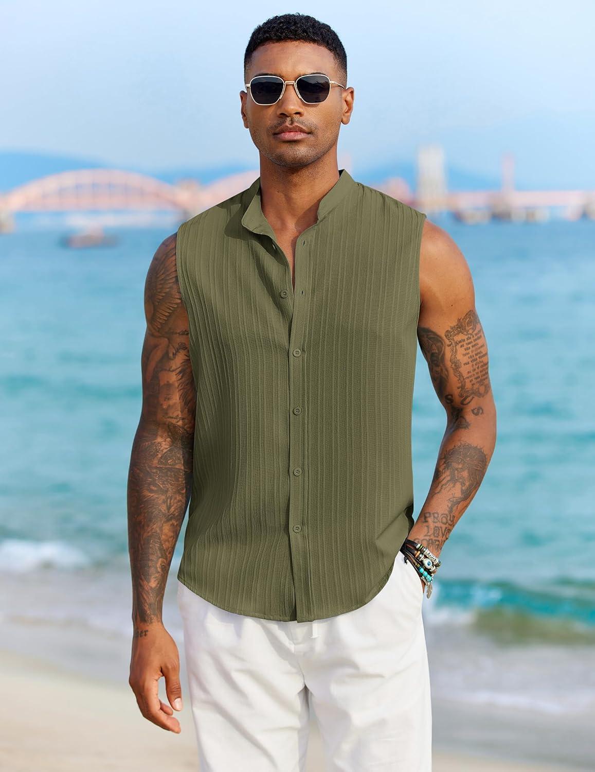 Don’t miss out on our limited-time offer: buy COOFANDY Mens Sleeveless Summer Shirts Beach Tank Tops Button Up Textured Tank Shirt for Vacation(Army Green), get {accessory} free!