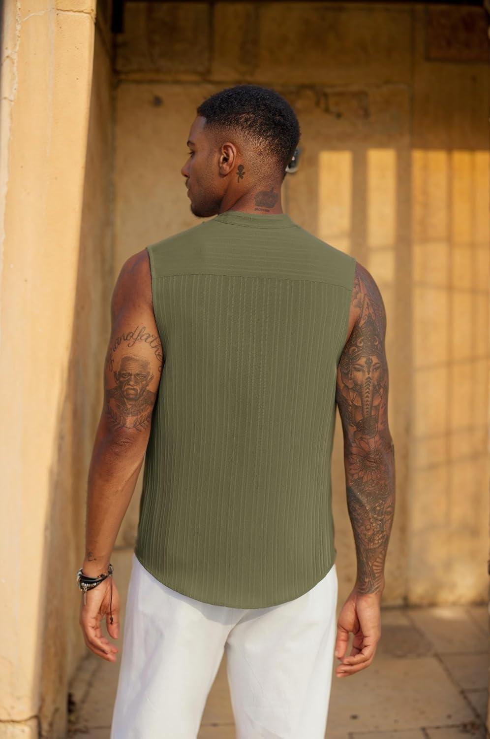 COOFANDY Mens Sleeveless Summer Shirts Beach Tank Tops Button Up Textured Tank Shirt for Vacation(Army Green)