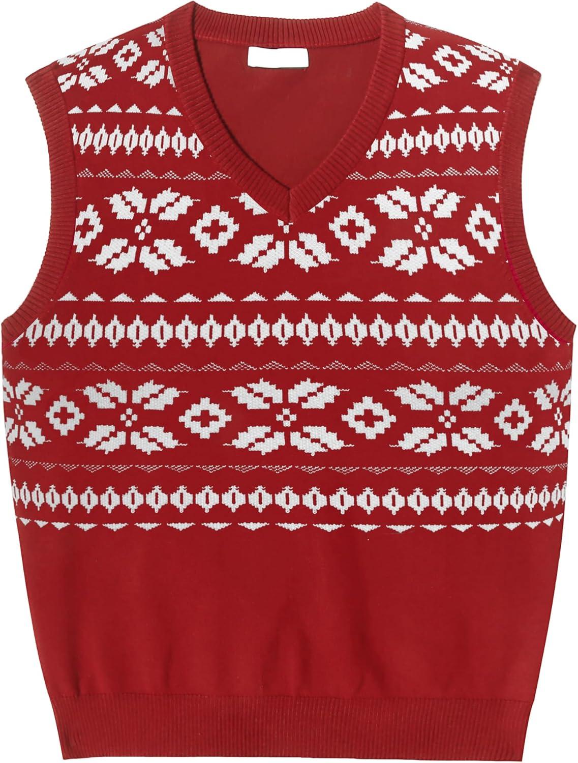 COOFANDY Men's Sleeveless Sweater Vest Lightweight V-Neck Cotton Vest Pullover(Red and White Snowflakes)