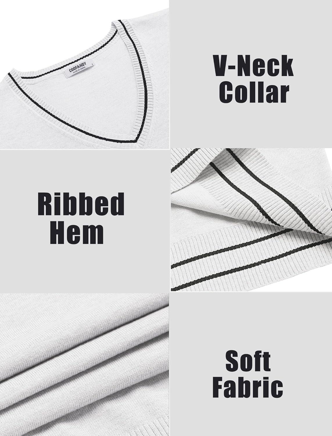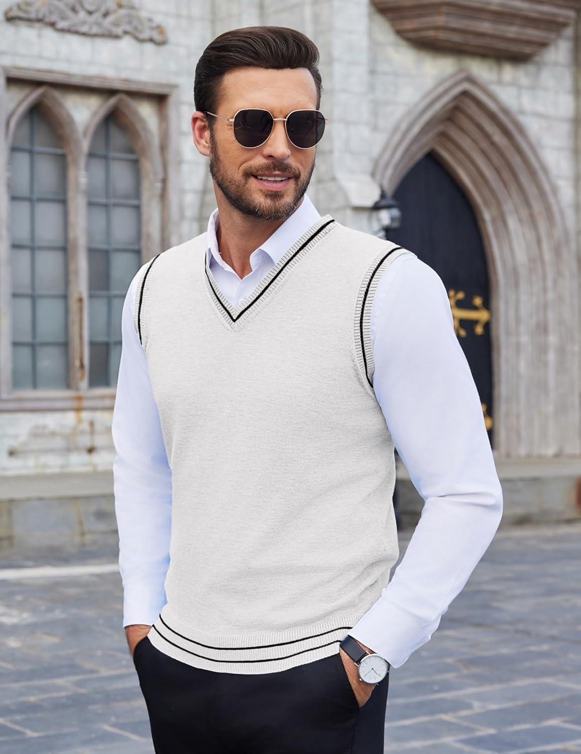 COOFANDY Men’s Sleeveless Sweater Vest Lightweight V-Neck Cotton Vest Pullover(Stripes White)