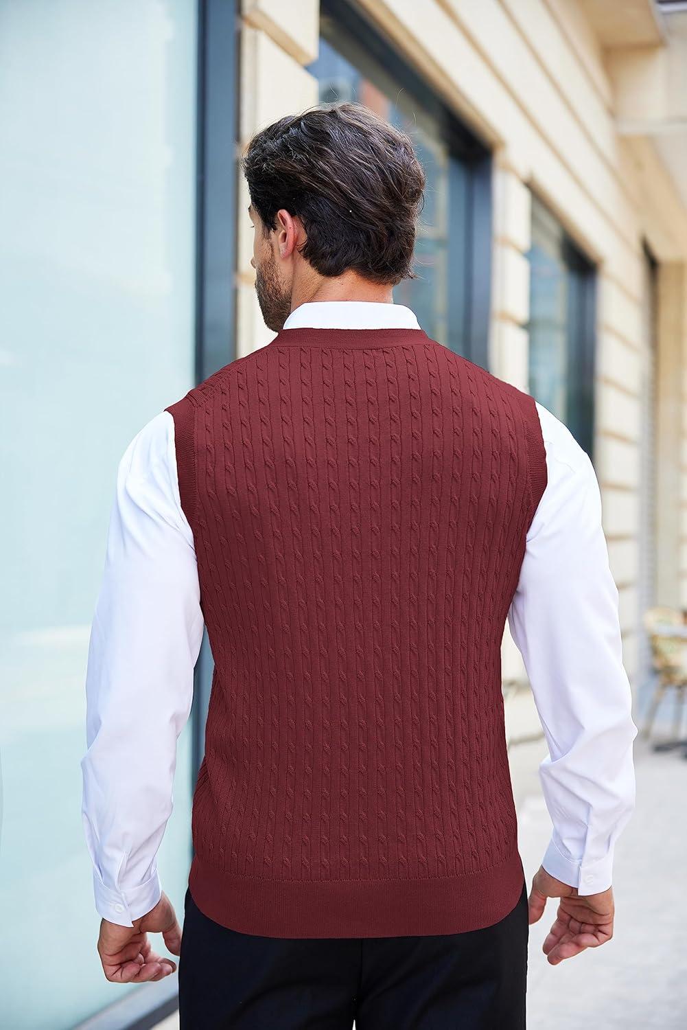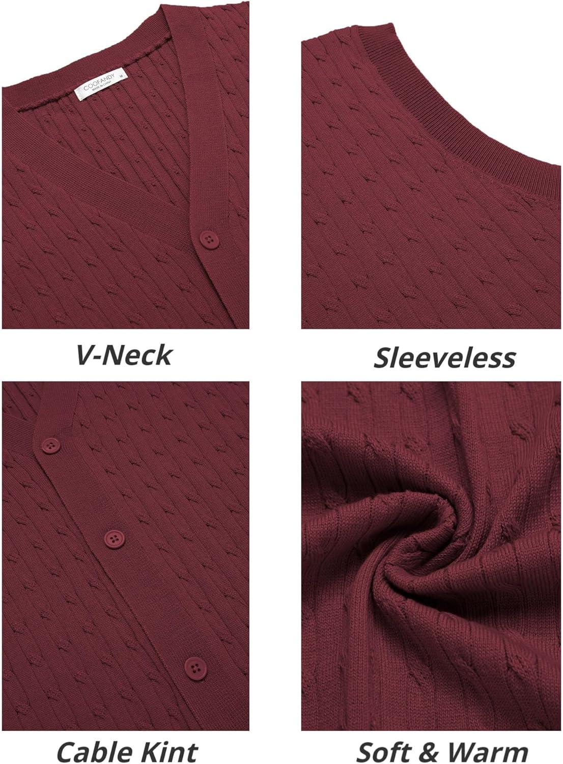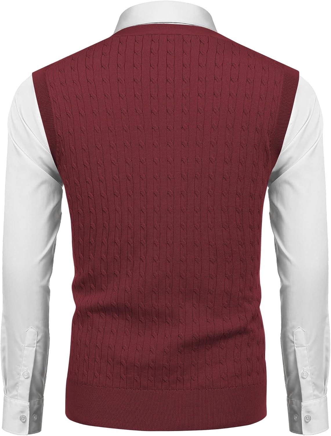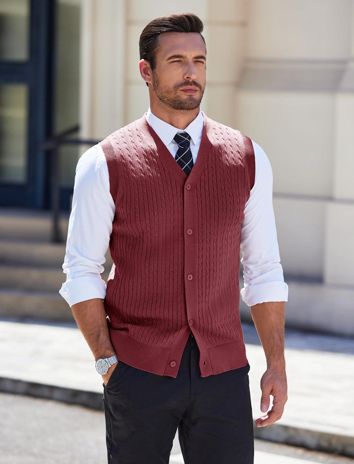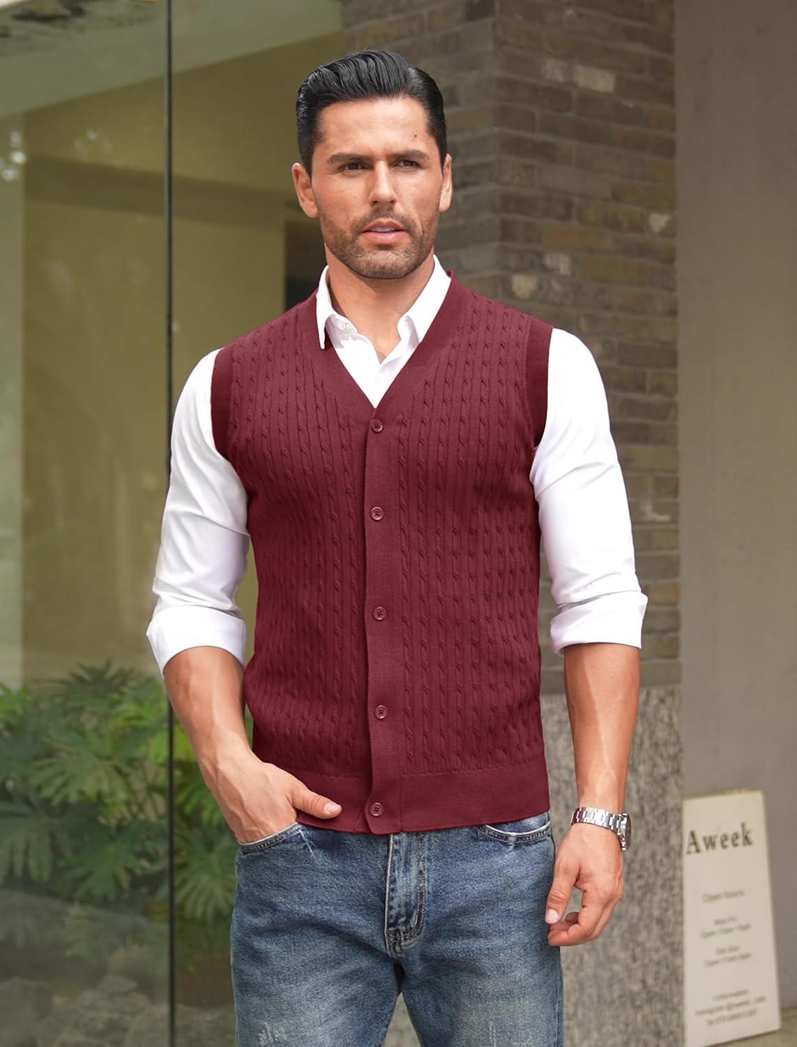 COOFANDY Men's Sleeveless Sweater Vest V-Neck Casual Cable Knit Button Down Cardigan Vest(Wine Red)