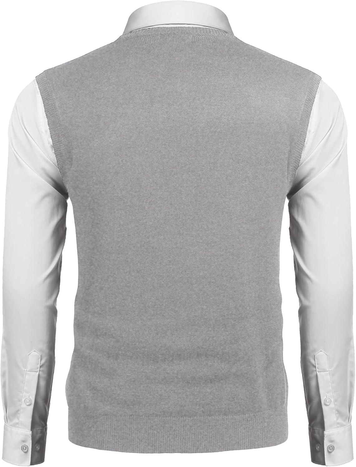 COOFANDY Men’s Sleeveless V Neck Pullover Sweater Slim Fit Casual Argyle Sweater Vest(Light Grey)