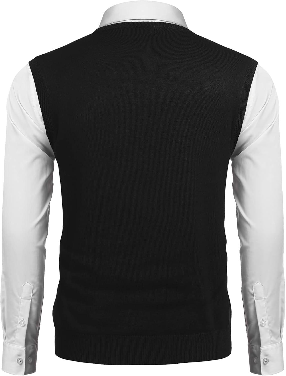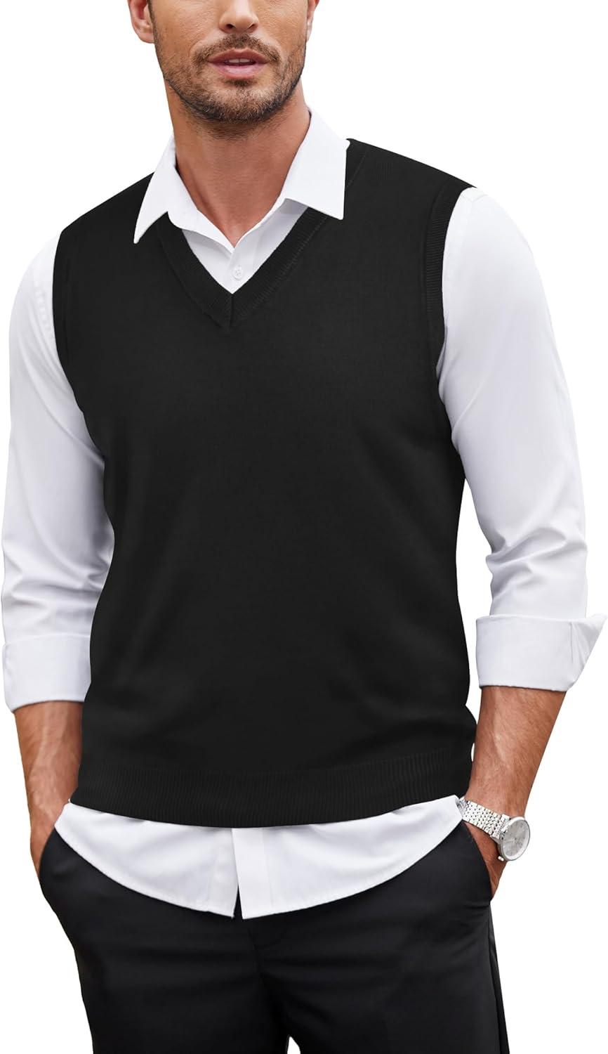 COOFANDY Men's Sleeveless V Neck Pullover Sweater Slim Fit Casual Argyle Sweater Vest(Pure Black)
