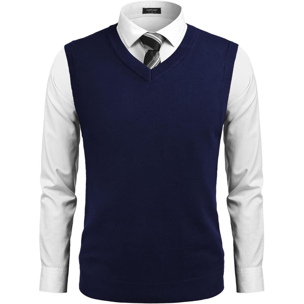 COOFANDY Men’s Sleeveless V Neck Pullover Sweater Slim Fit Casual Argyle Sweater Vest(Pure Blue)
