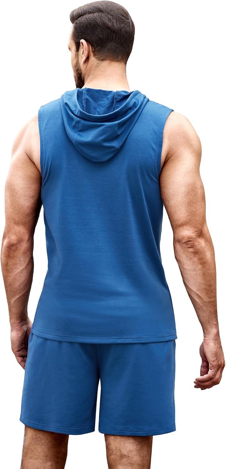 COOFANDY Mens Sleeveless Workout Hoodie Shorts Set 2 Piece Outfits Hooded Tank Tops Gym Tracksuit Sweatsuits(Blue)