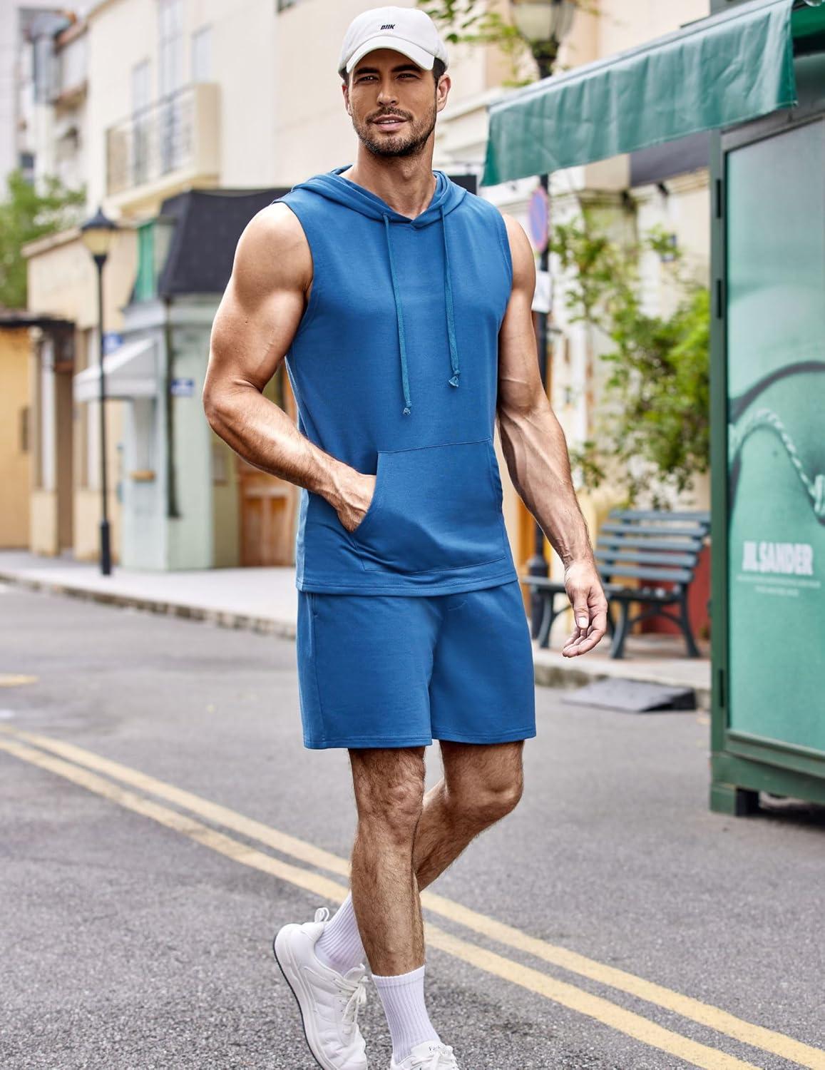 Get the COOFANDY Mens Sleeveless Workout Hoodie Shorts Set 2 Piece Outfits Hooded Tank Tops Gym Tracksuit Sweatsuits(Blue) you want at a price you can afford with our markdown sale.