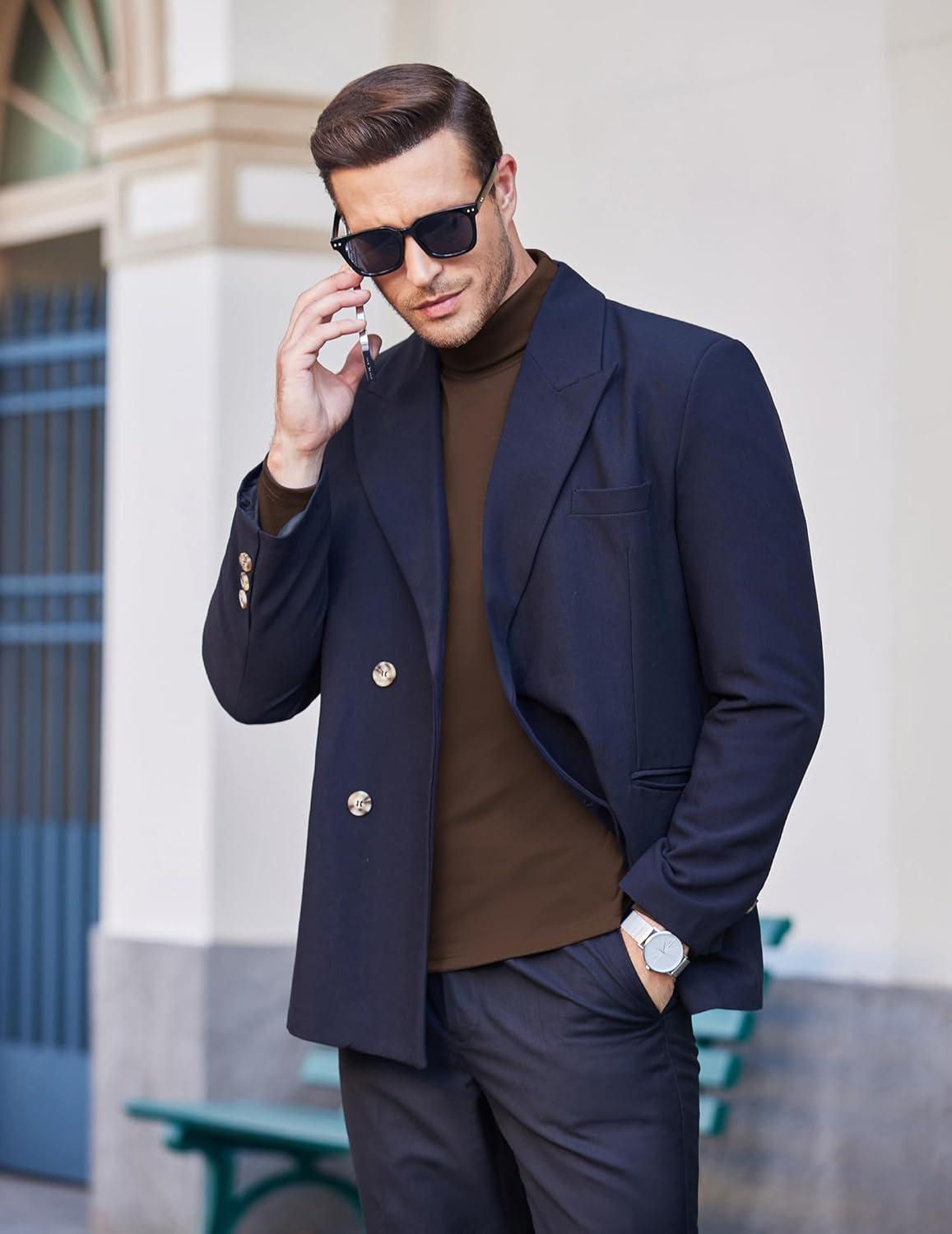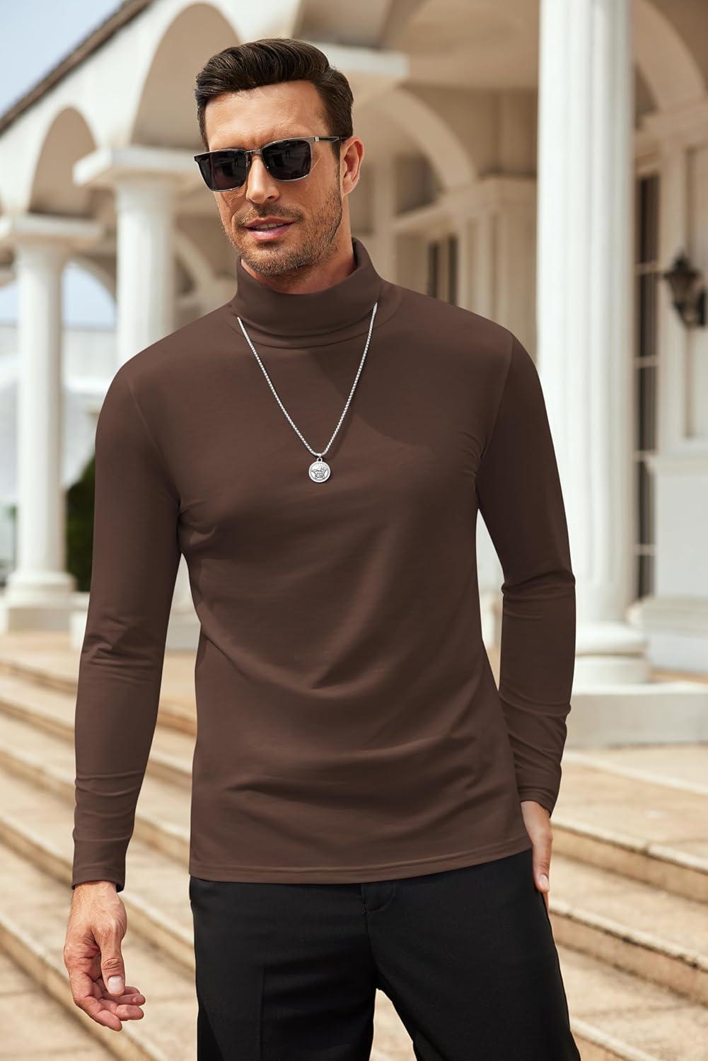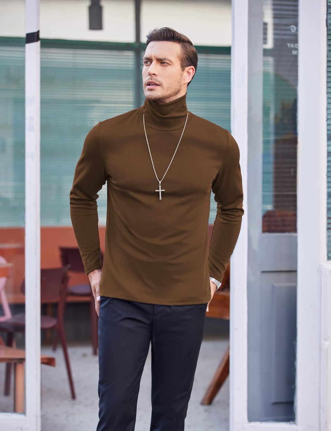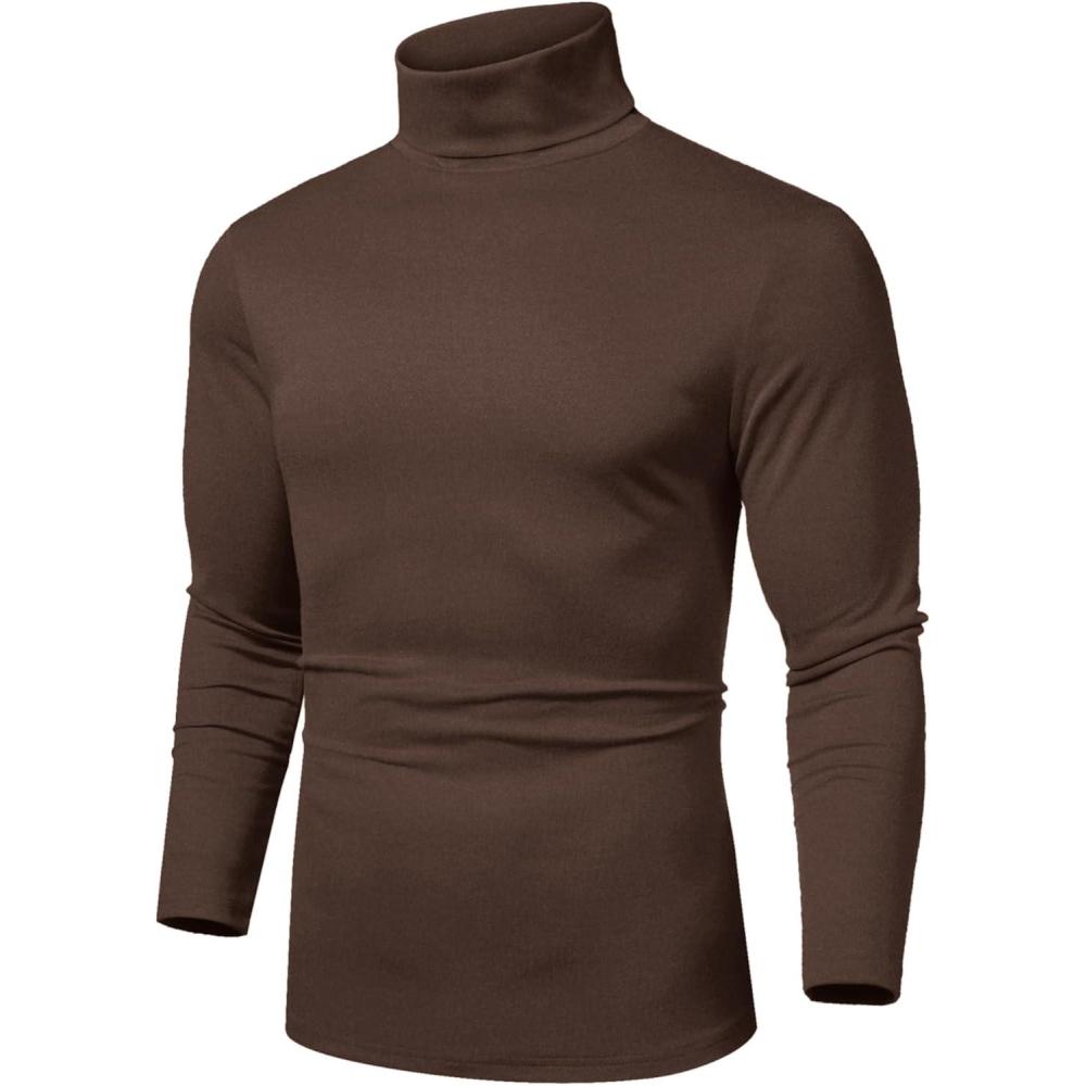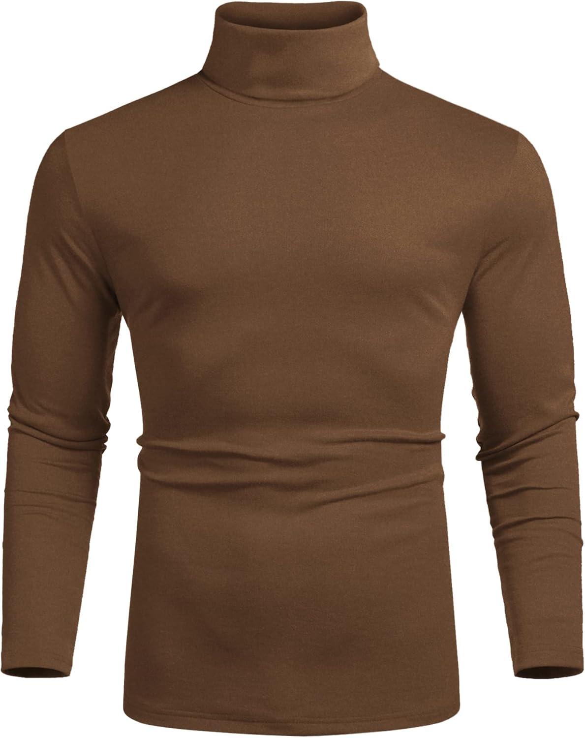 COOFANDY Men's Slim Fit Basic Turtleneck Long Sleeve Lightweight Pullover Sweaters Casual Knitted Tops(Brown)