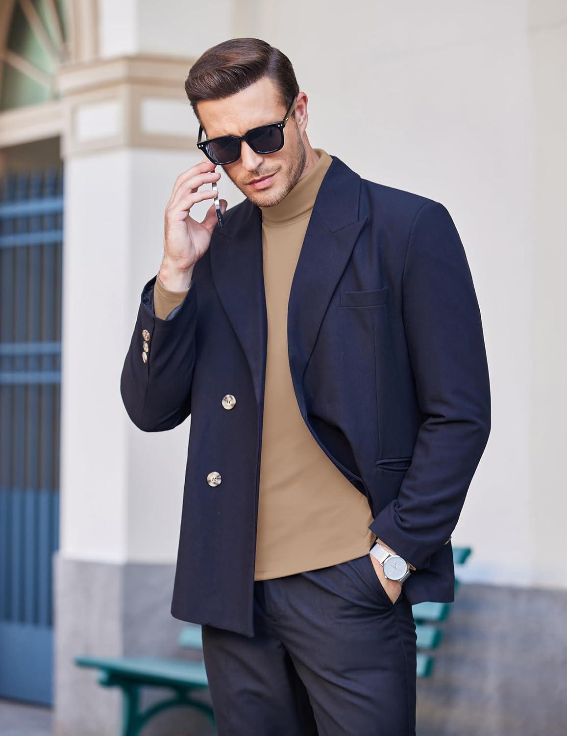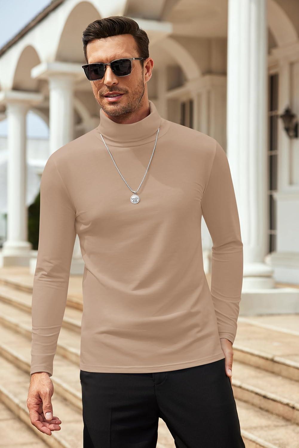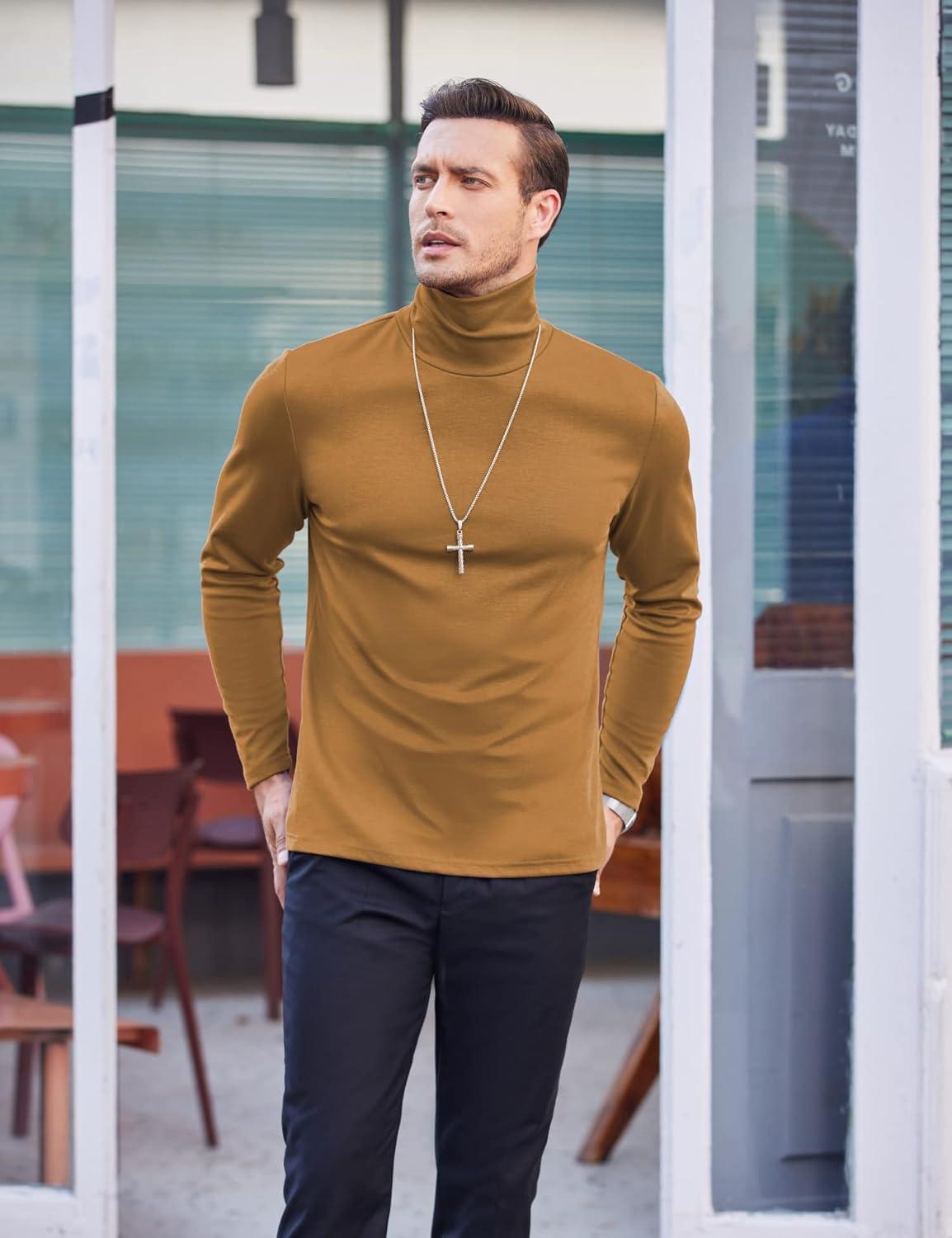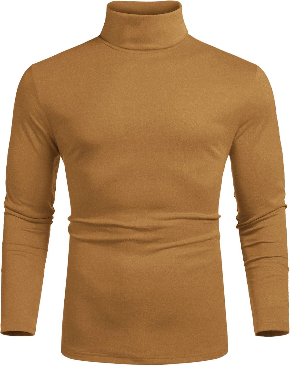 COOFANDY Men's Slim Fit Basic Turtleneck Long Sleeve Lightweight Pullover Sweaters Casual Knitted Tops(Camel)