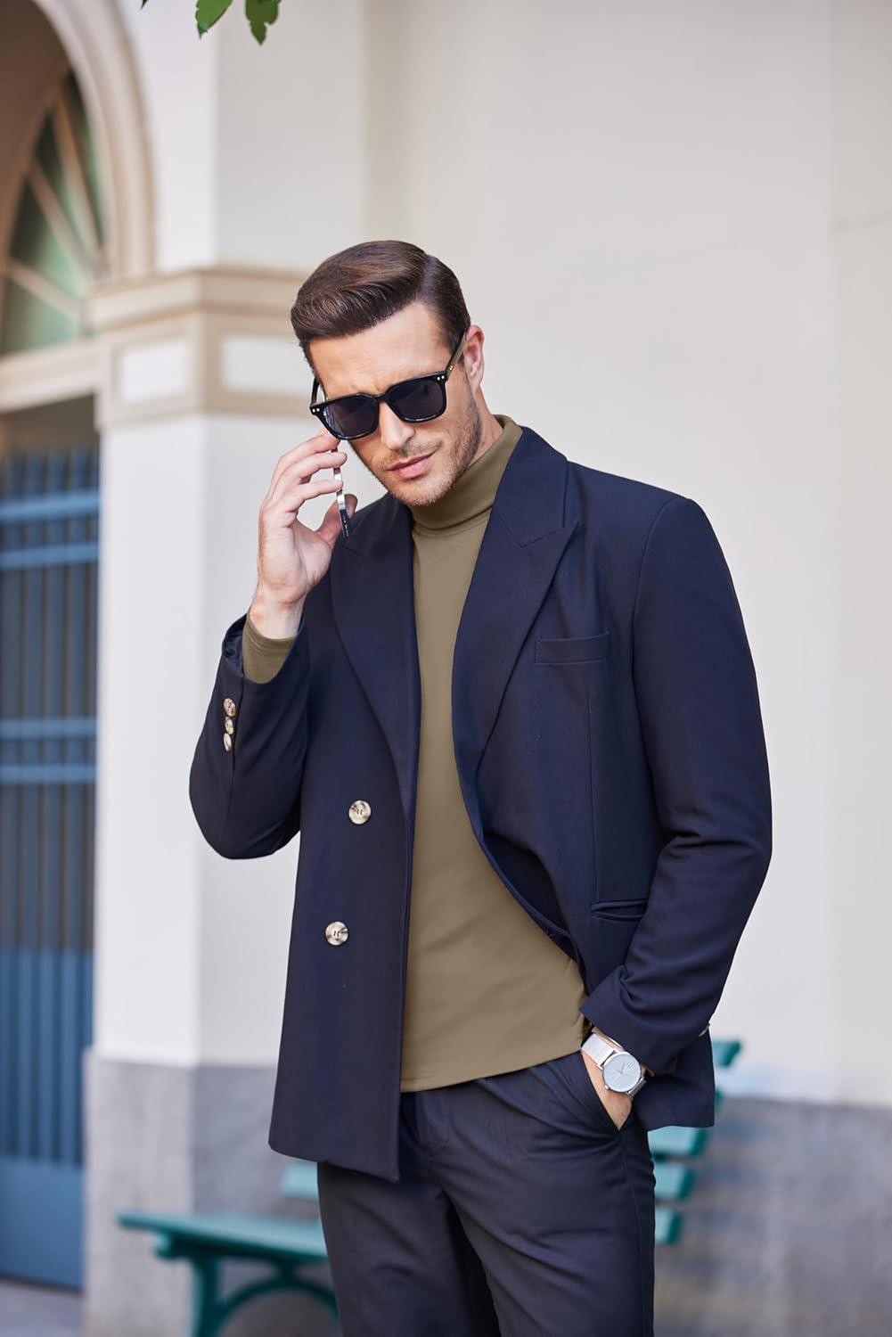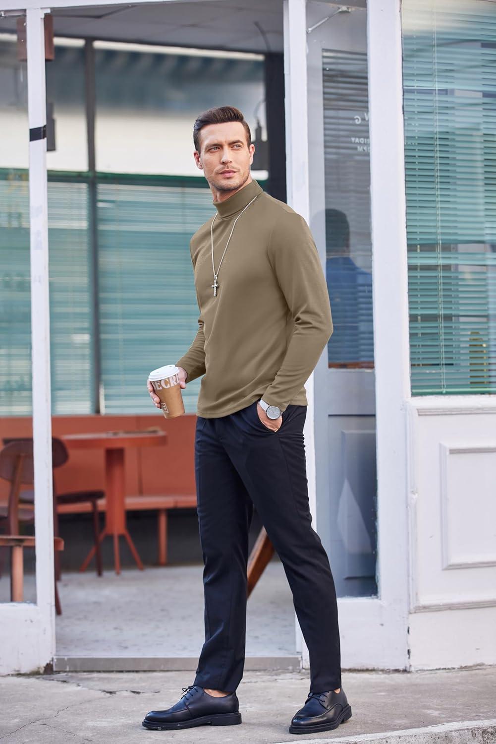 COOFANDY Men’s Slim Fit Basic Turtleneck Long Sleeve Lightweight Pullover Sweaters Casual Knitted Tops(Khaki)
