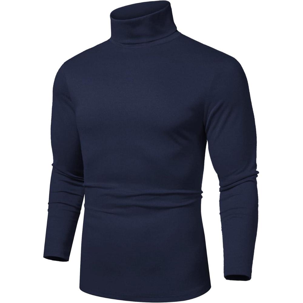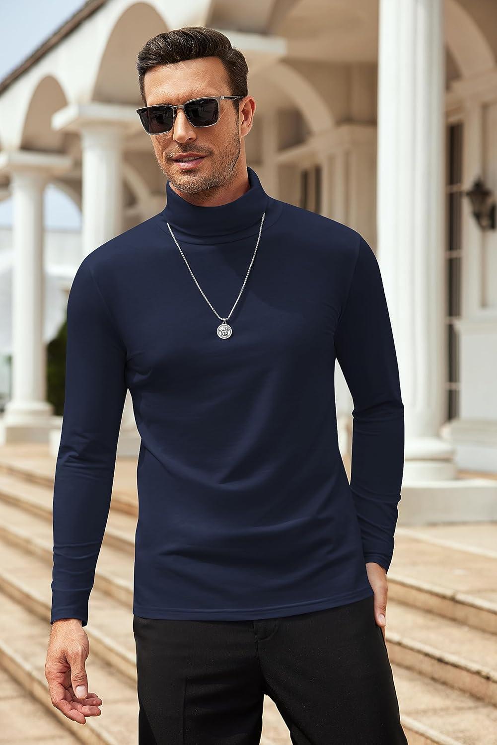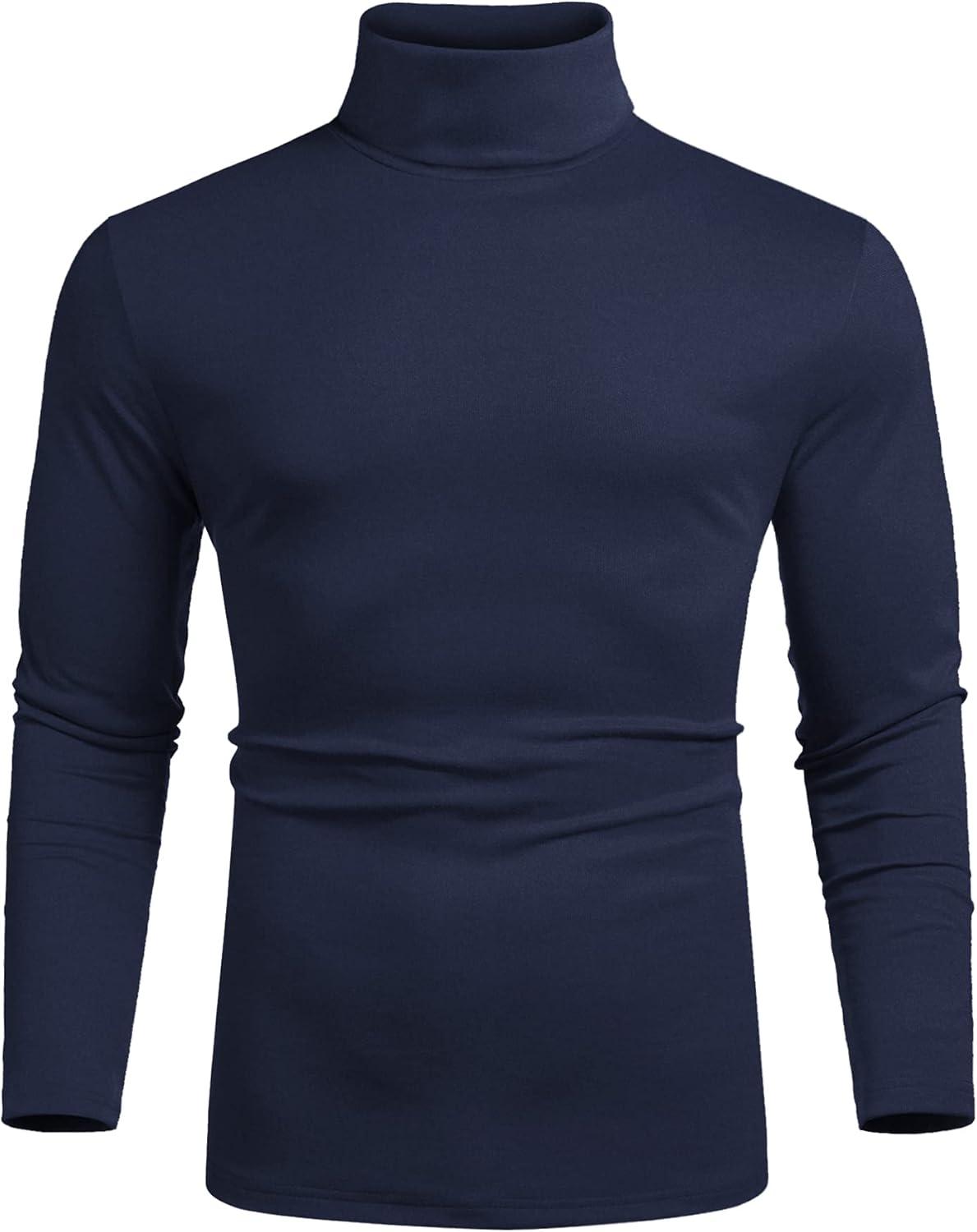 COOFANDY Men's Slim Fit Basic Turtleneck Long Sleeve Lightweight Pullover Sweaters Casual Knitted Tops(Navy)