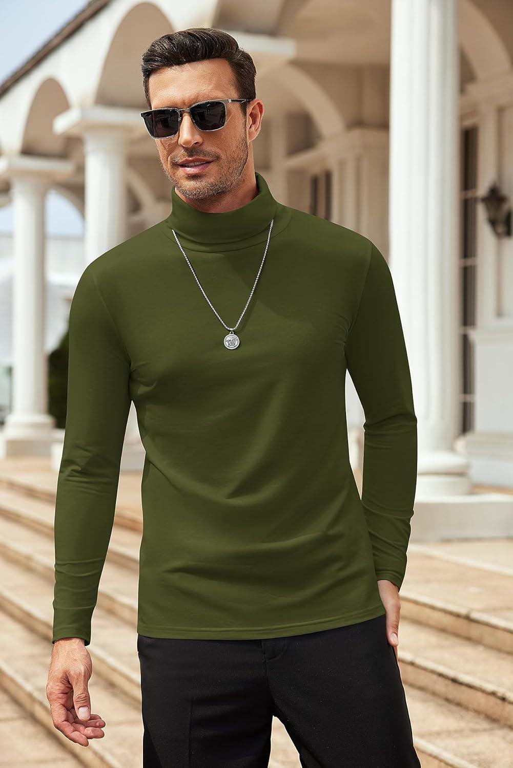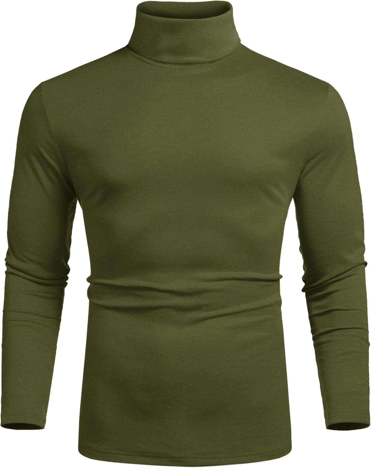 COOFANDY Men's Slim Fit Basic Turtleneck Long Sleeve Lightweight Pullover Sweaters Casual Knitted Tops(Olive Green)
