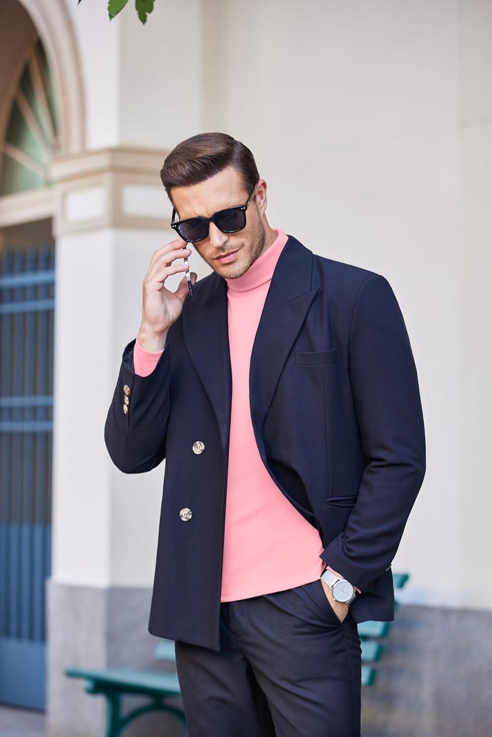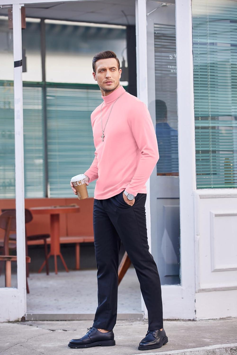 COOFANDY Men's Slim Fit Basic Turtleneck Long Sleeve Lightweight Pullover Sweaters Casual Knitted Tops(Pink)