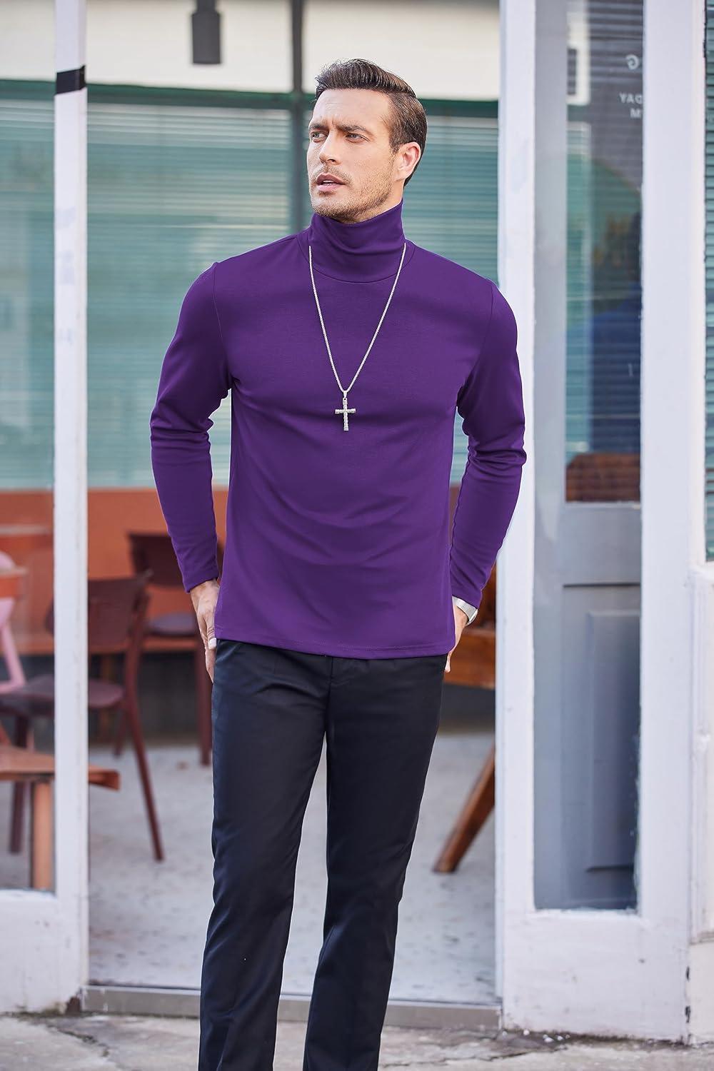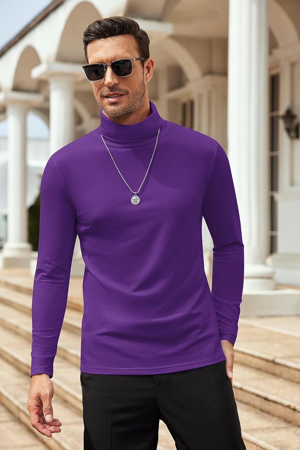 COOFANDY Men's Slim Fit Basic Turtleneck Long Sleeve Lightweight Pullover Sweaters Casual Knitted Tops(Purple)