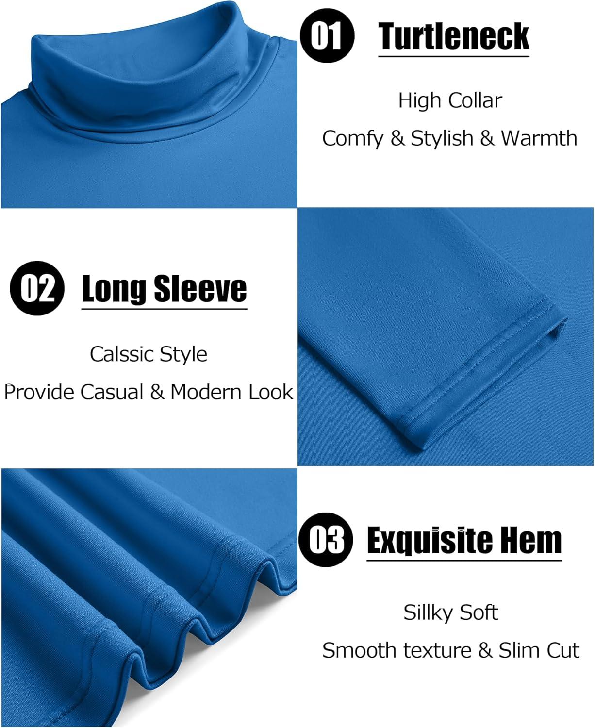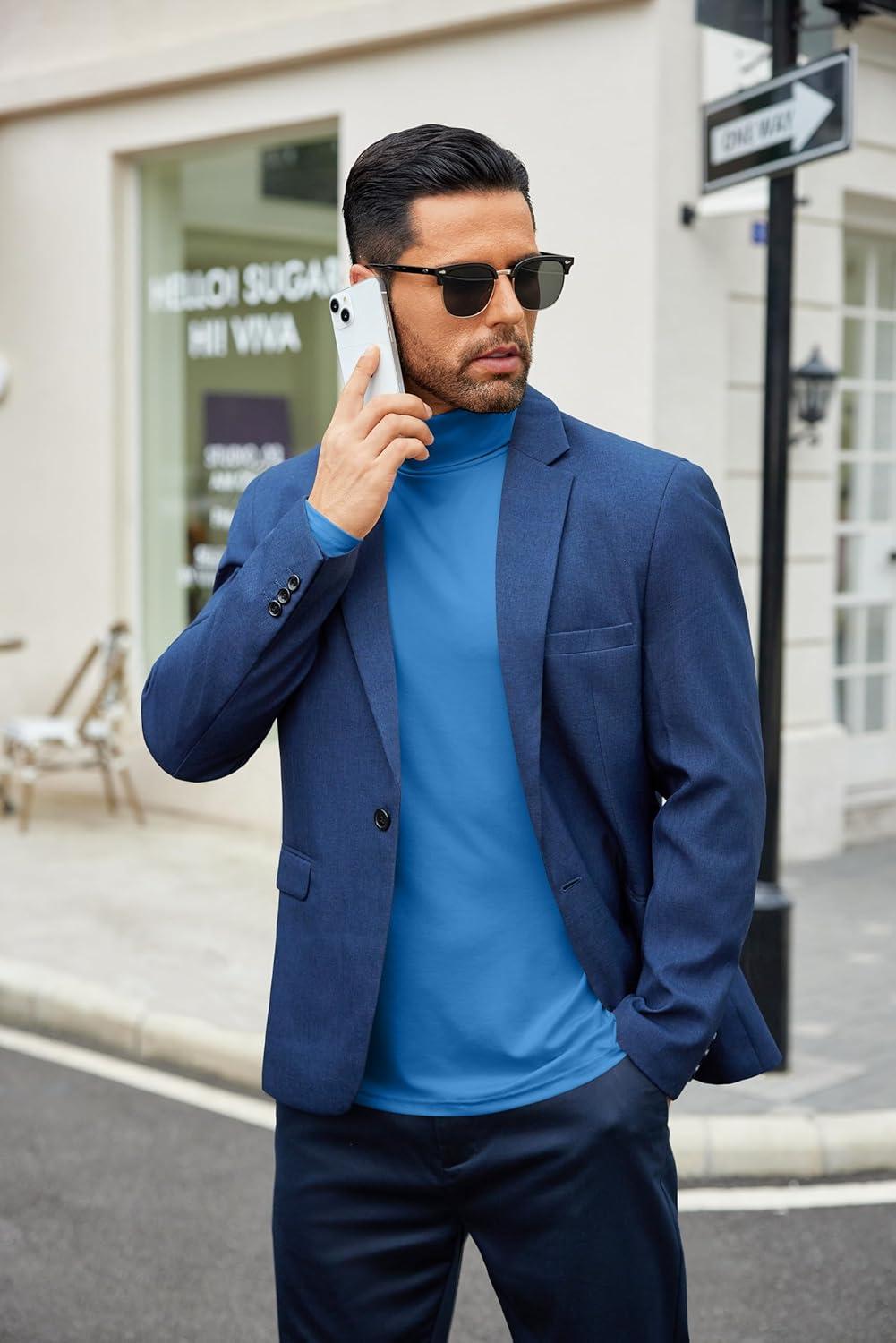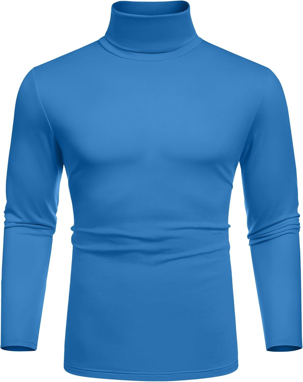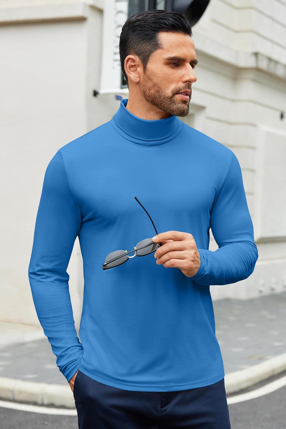 COOFANDY Men's Slim Fit Basic Turtleneck T-Shirt Long Sleeve Solid T Shirts Casual Knit Pullover Thermal Tops(1 Pack- Blue)