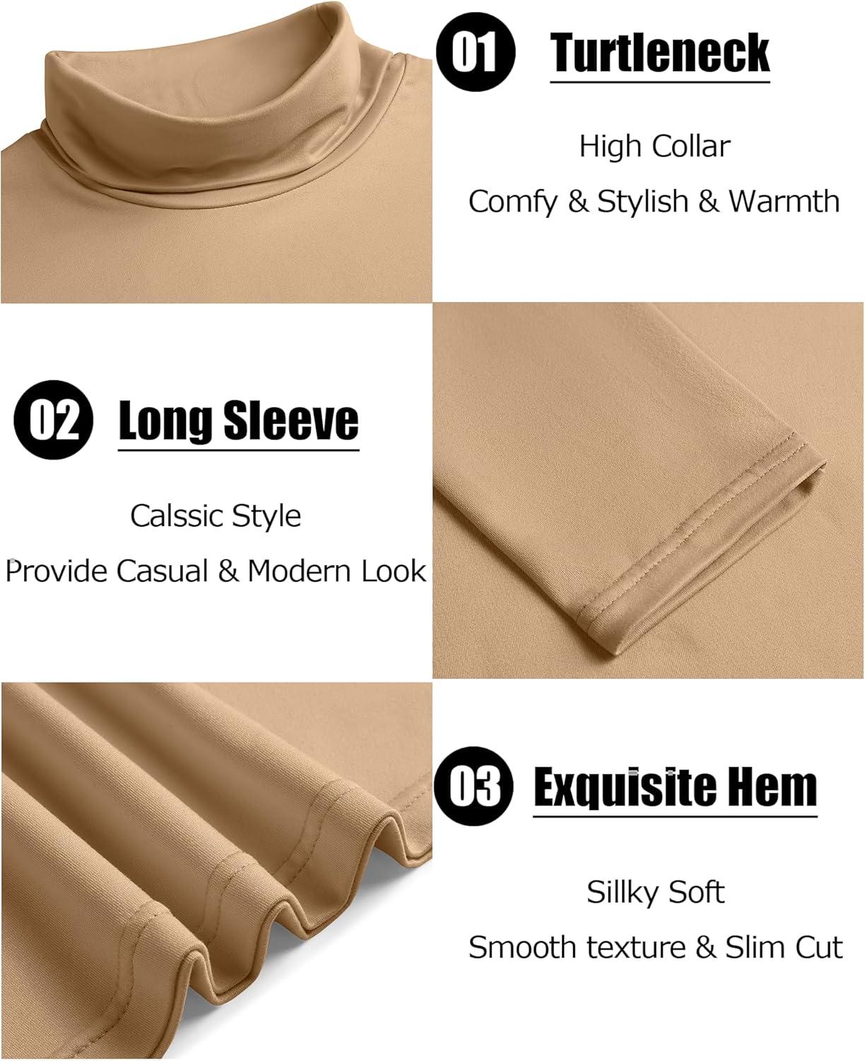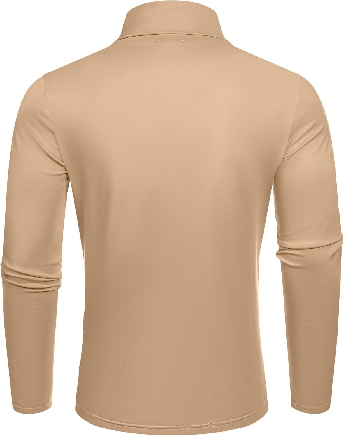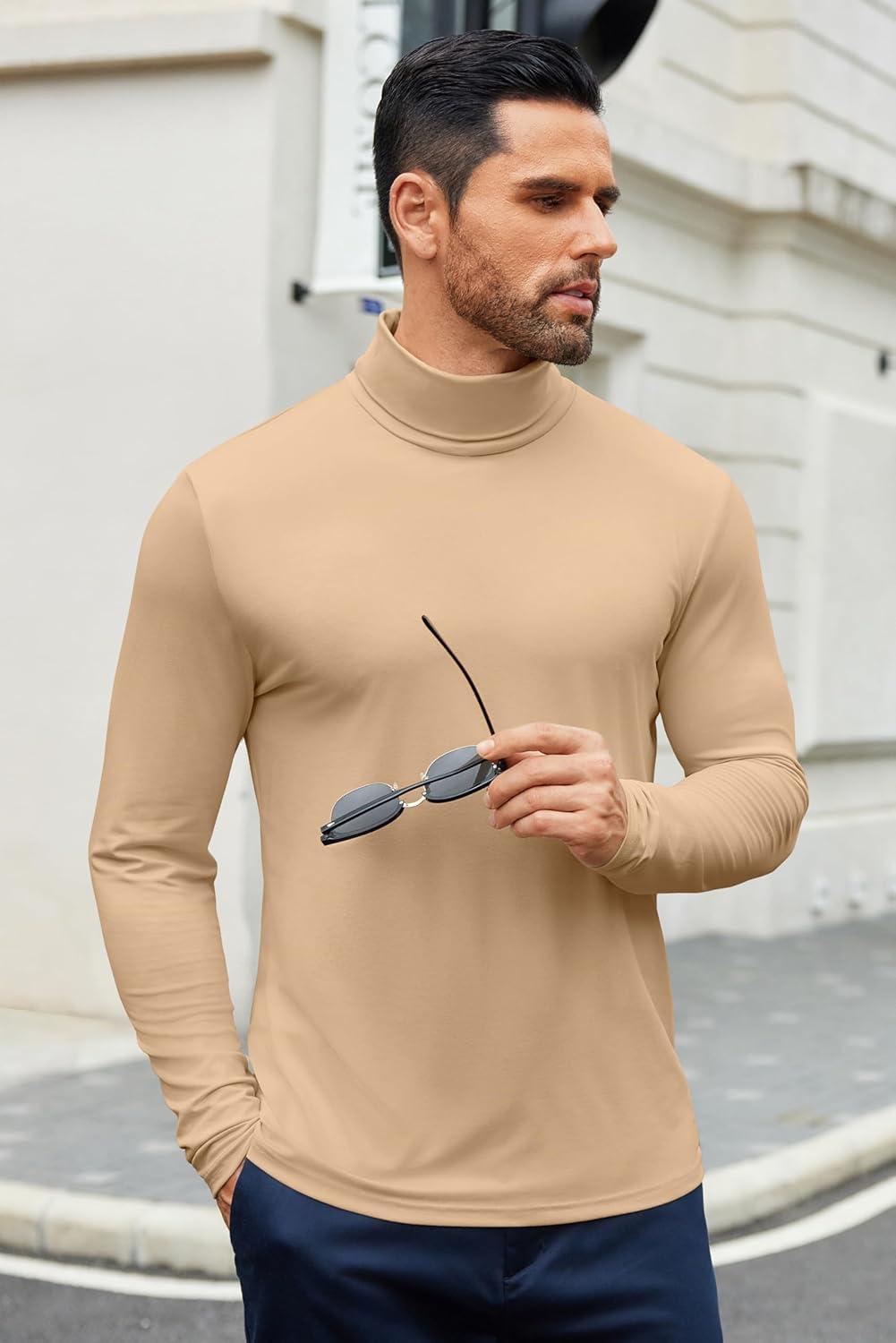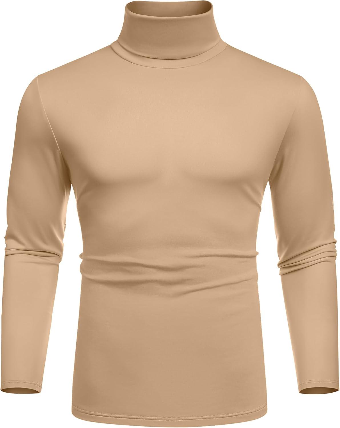 COOFANDY Men's Slim Fit Basic Turtleneck T-Shirt Long Sleeve Solid T Shirts Casual Knit Pullover Thermal Tops(1 Pack- Khaki)